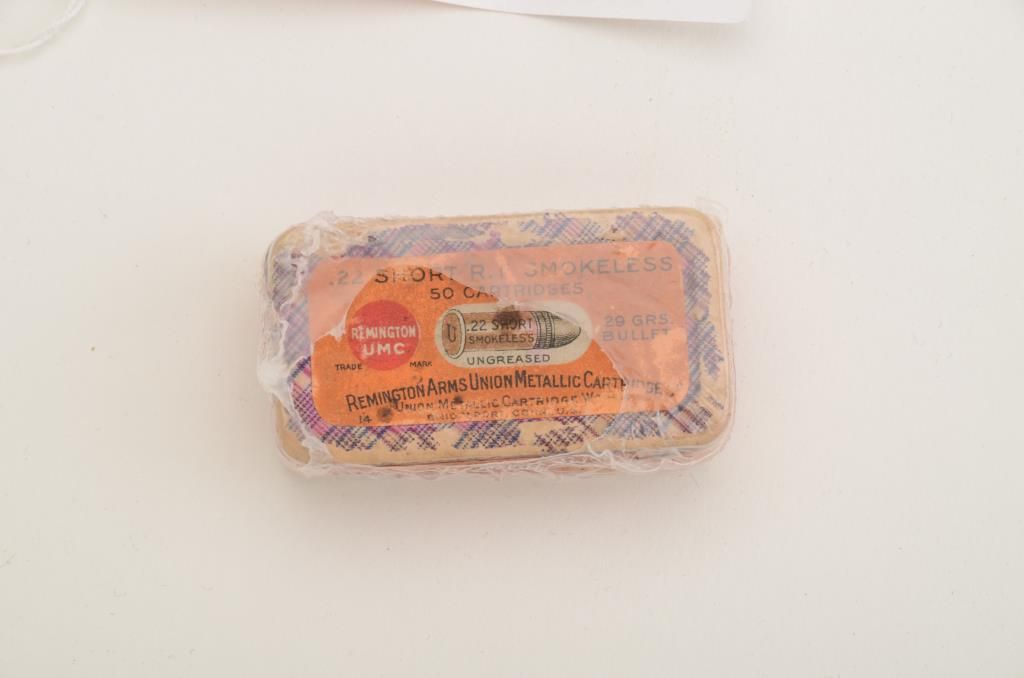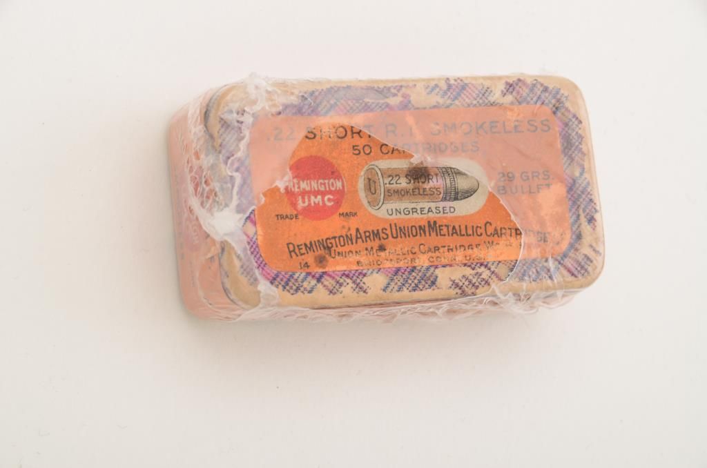 Box of Remington UMC .22 Short smokeless cartridges in good condition. Est.: $10-$20.