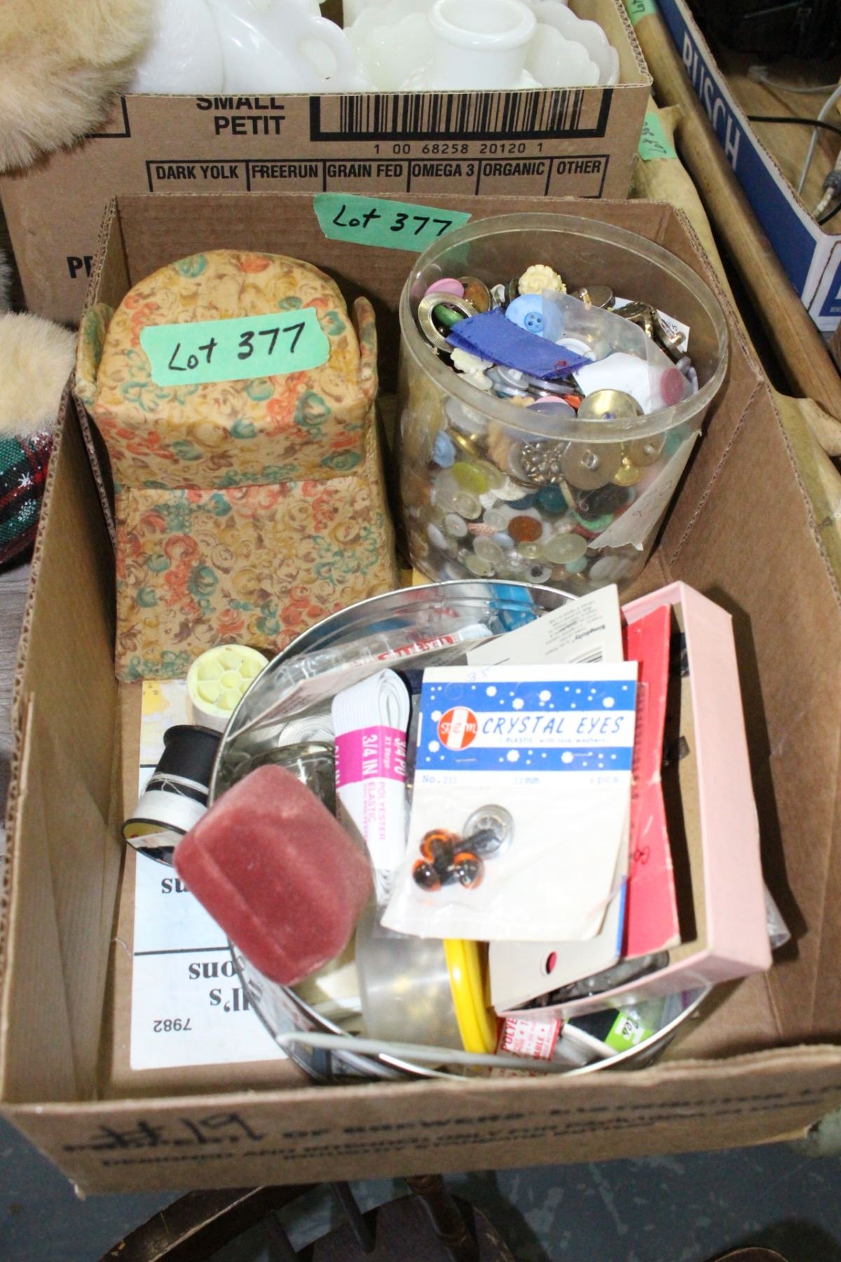 Box of Sewing Supplies and a Lrg. Container of Buttons