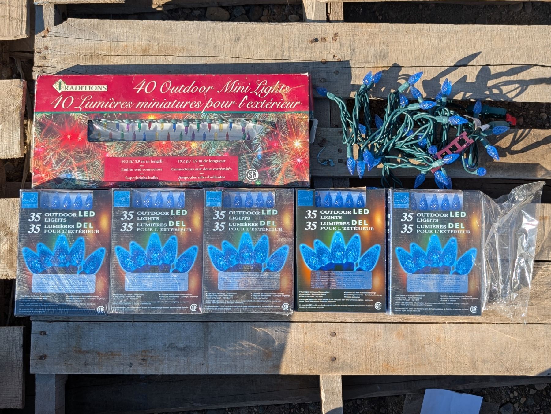 Box of Unopened Christmas Lights and Other Christmas Lights