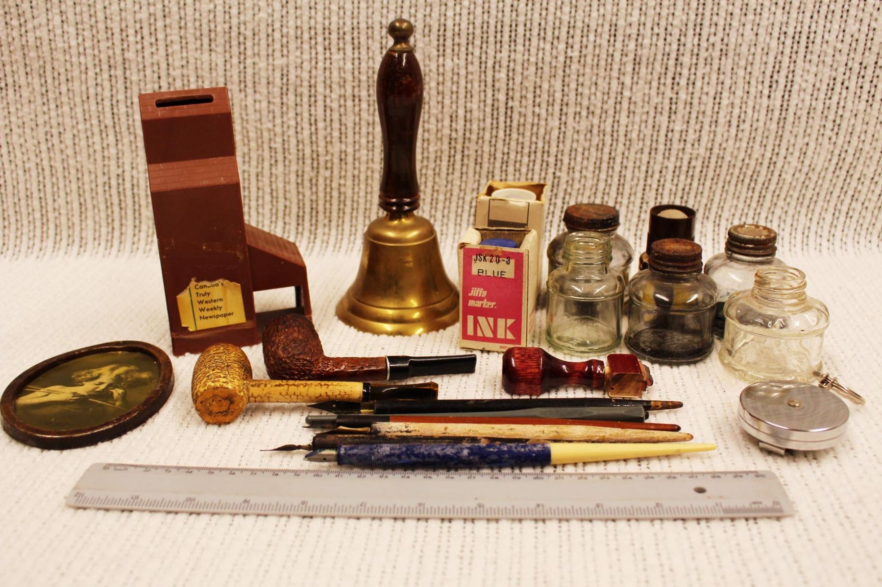 Box of Vintage Misc (Fountain Pens, Glass Jars, Pipes)