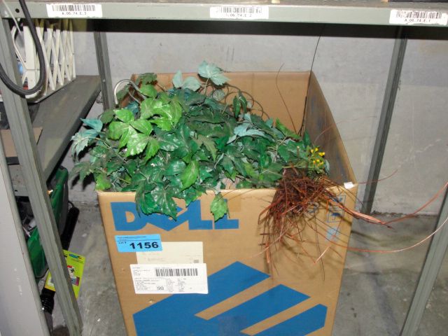 Box of artificial decorative plants and flowers