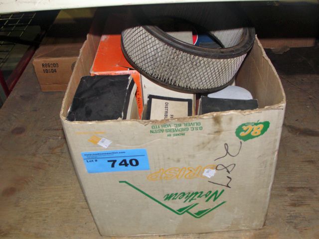 Box of assorted automotive maintenance items; filters etc