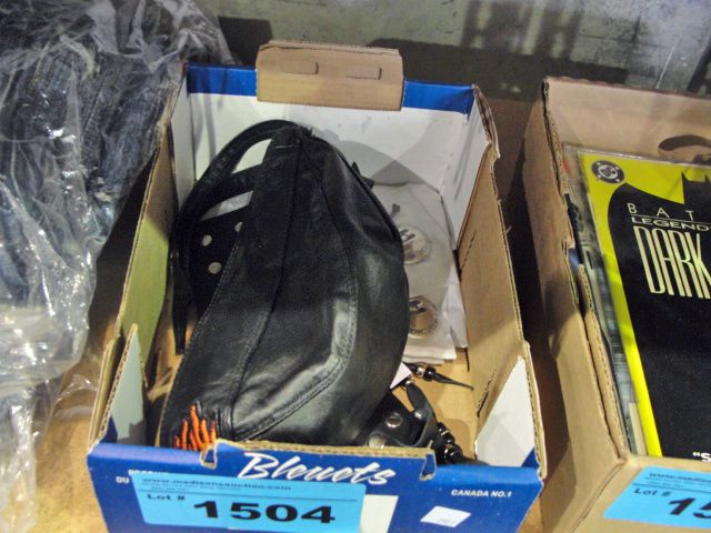 Box of assorted harley davidson gear