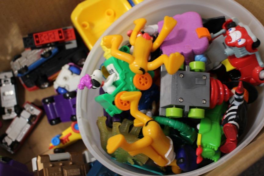 Box of assorted kids toys