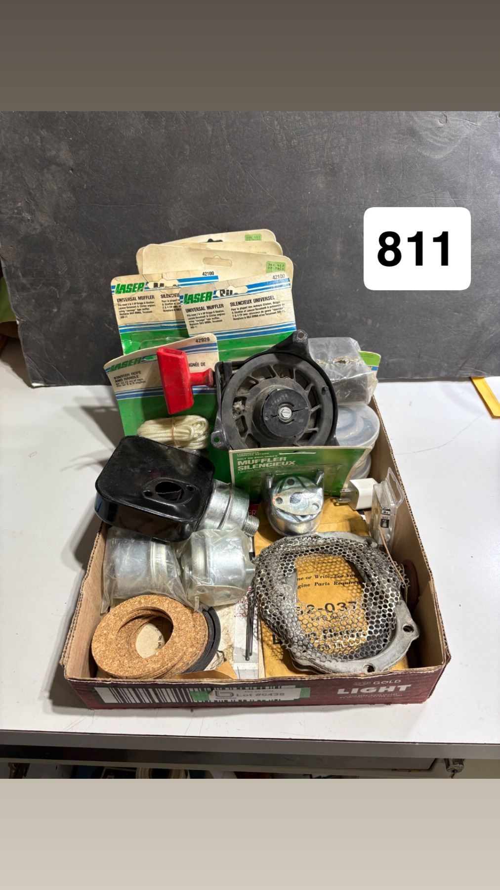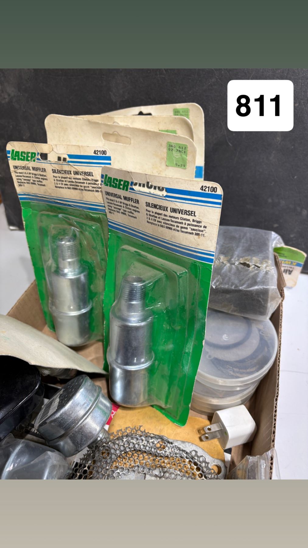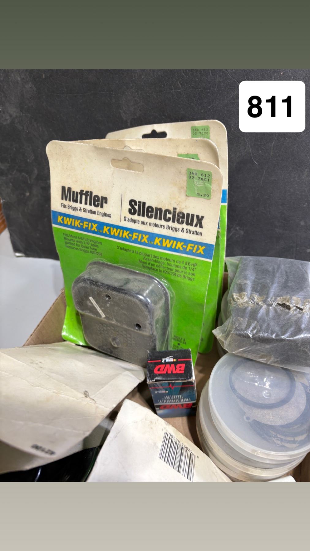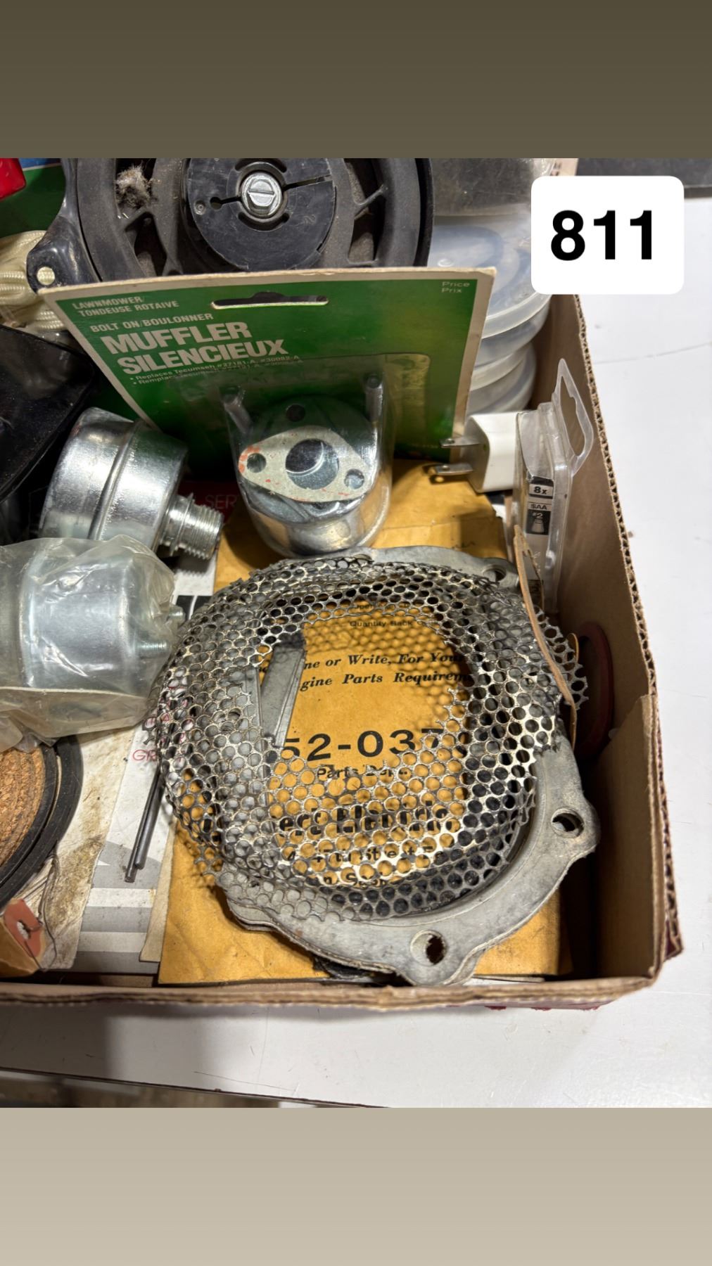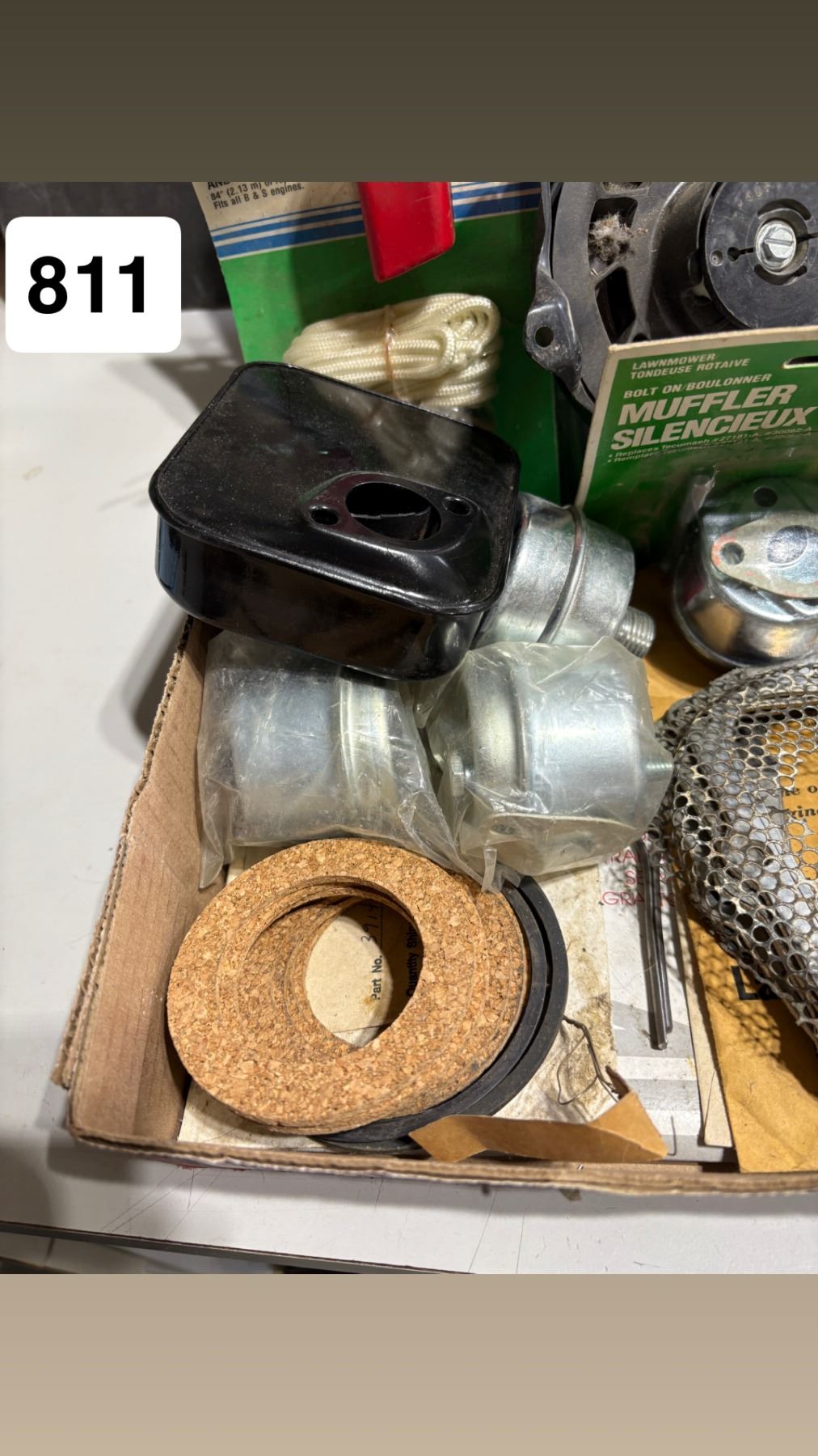 Box of assorted small engine parts