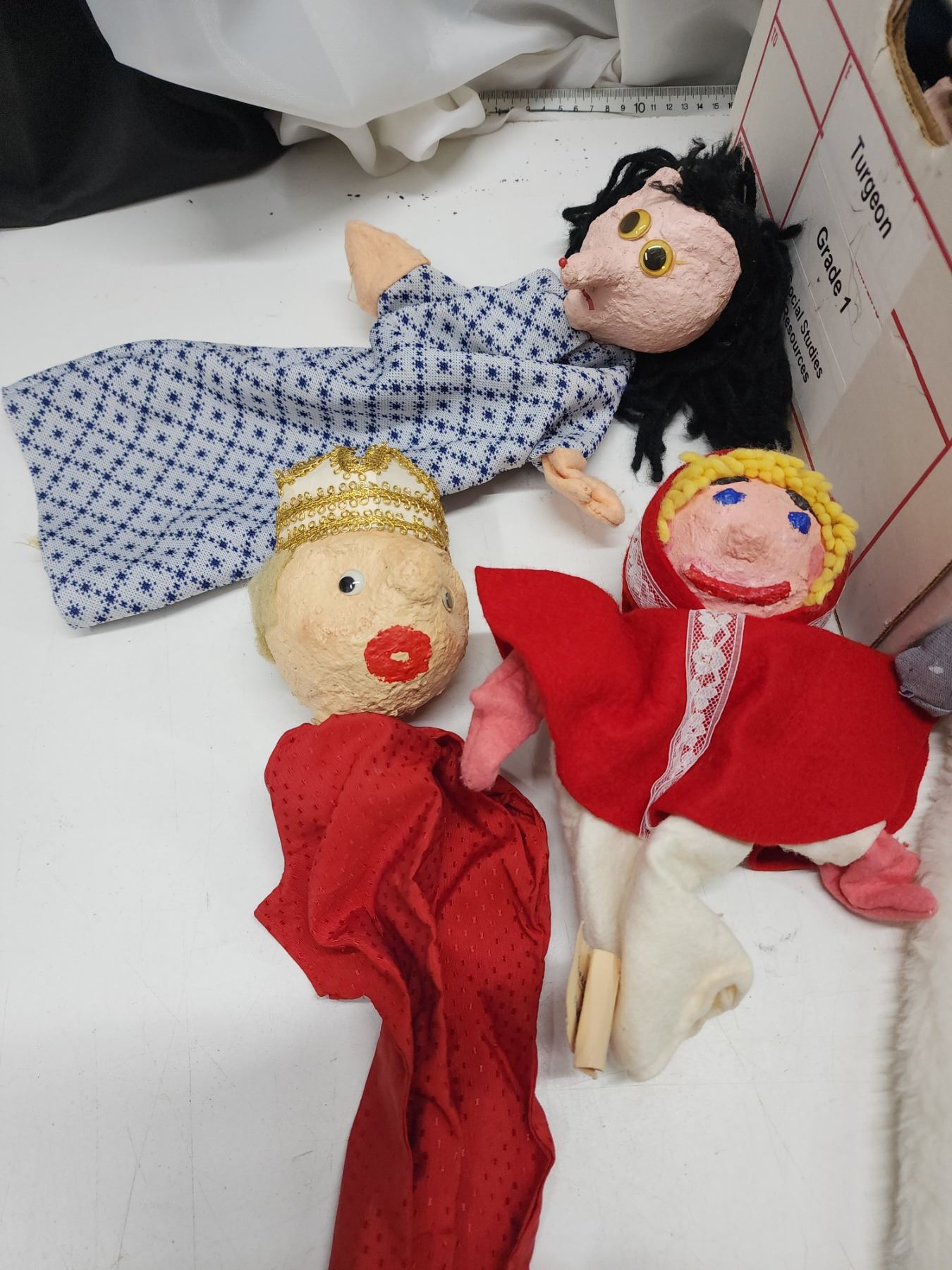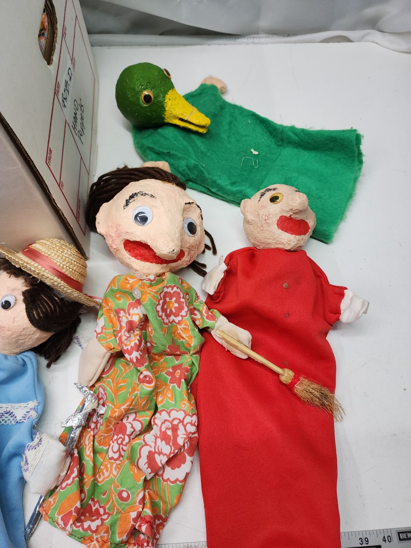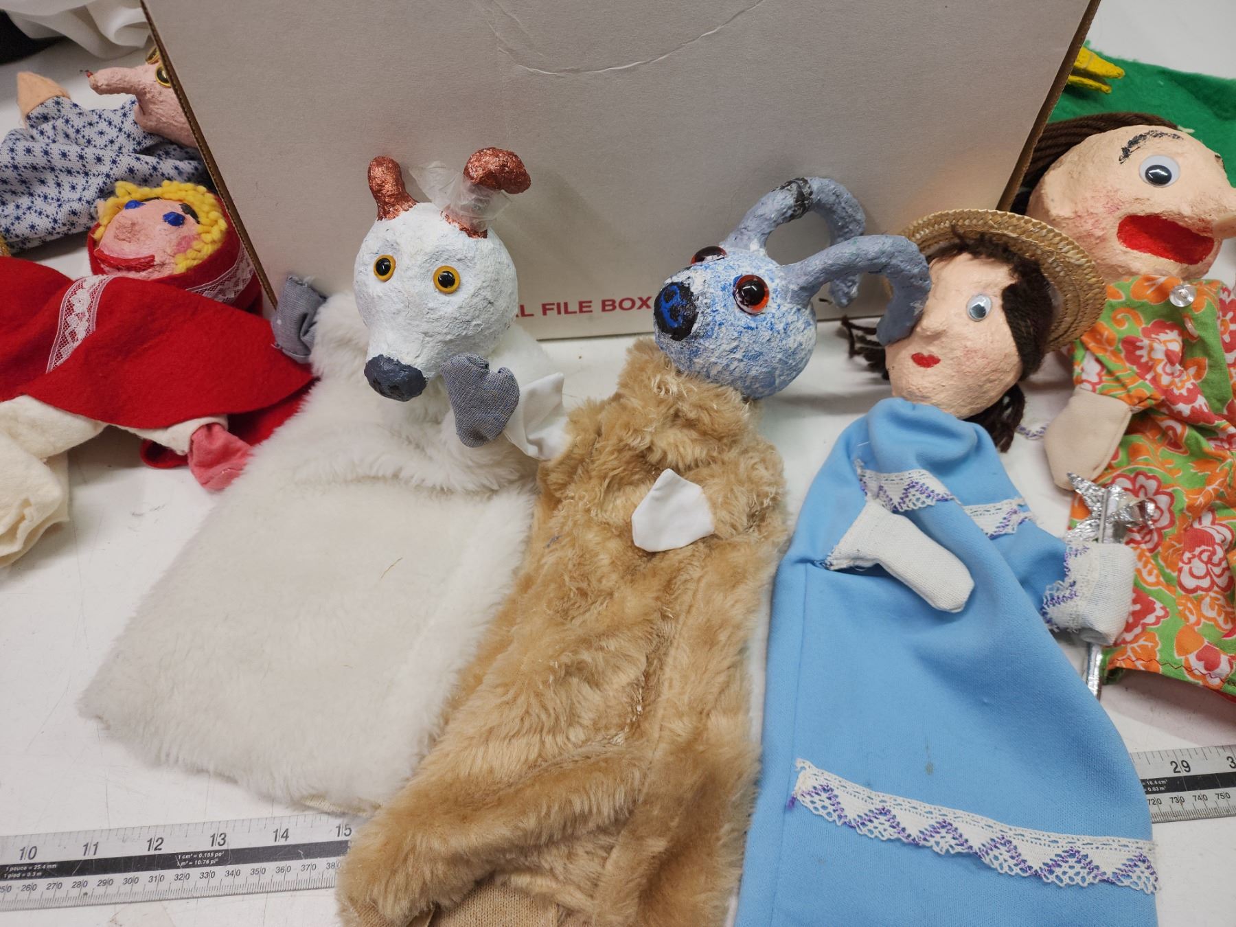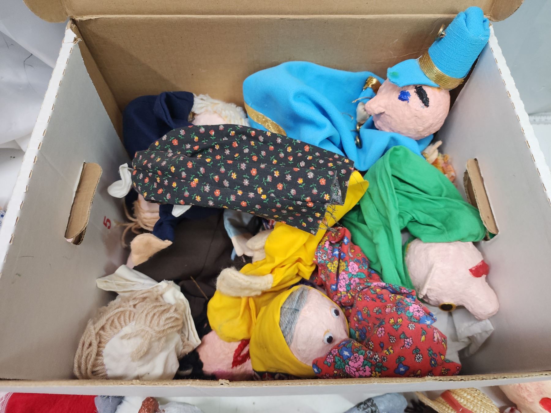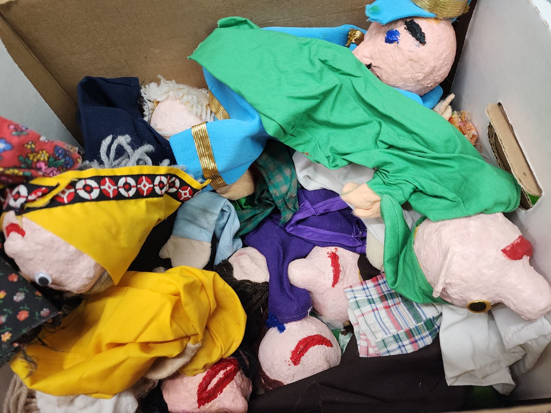 Box of homemade puppets