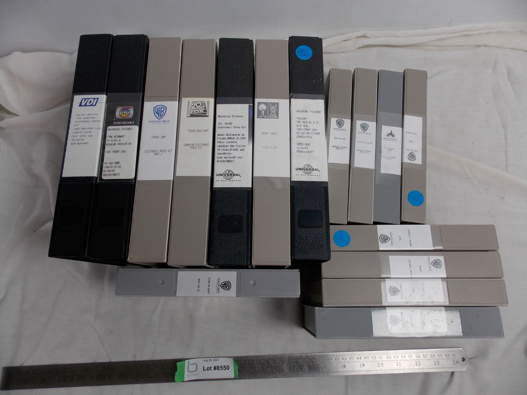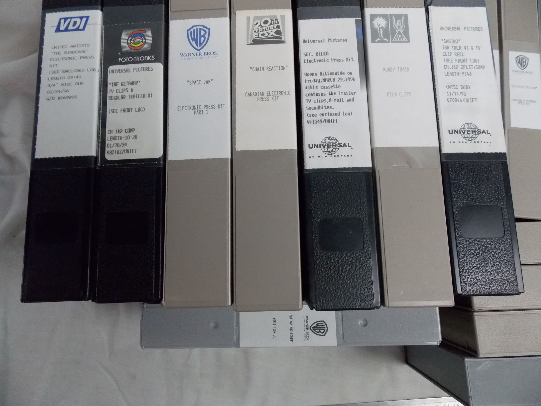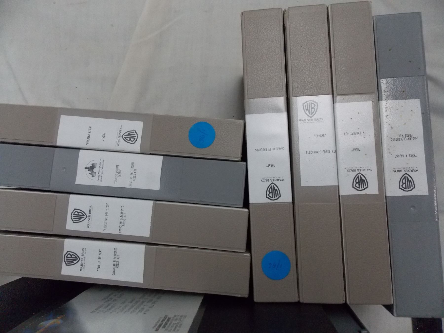 Box of movie press casette tapes - large + vhs size