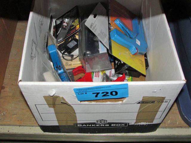 Box of new products; flashlights, cable tie gun