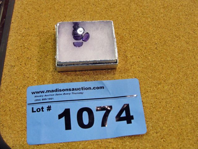 Box of polished purple gemstones