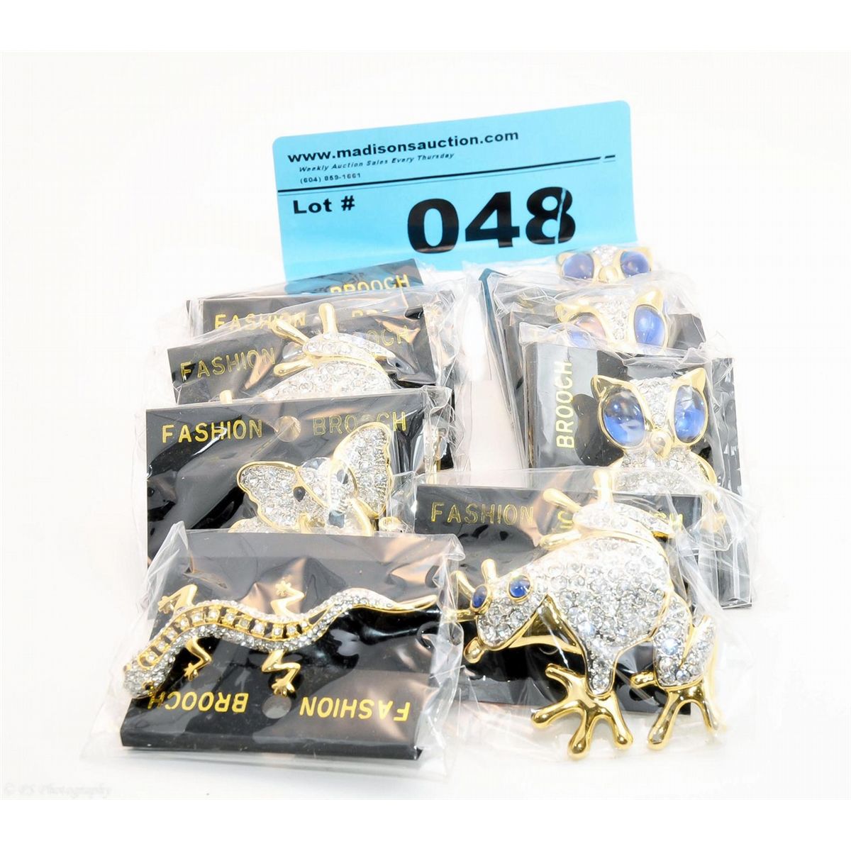 Box of rhinestone fashion broochs