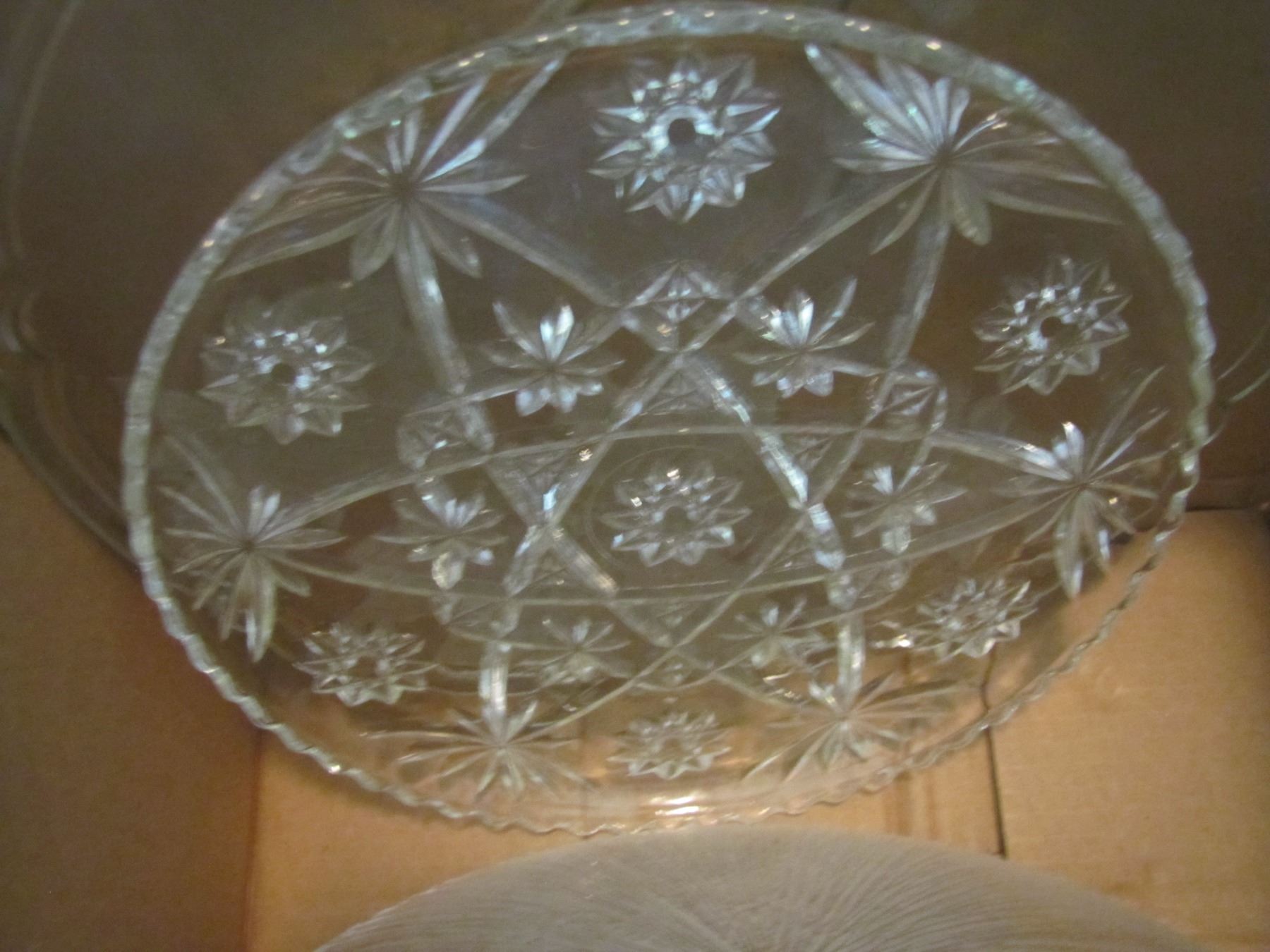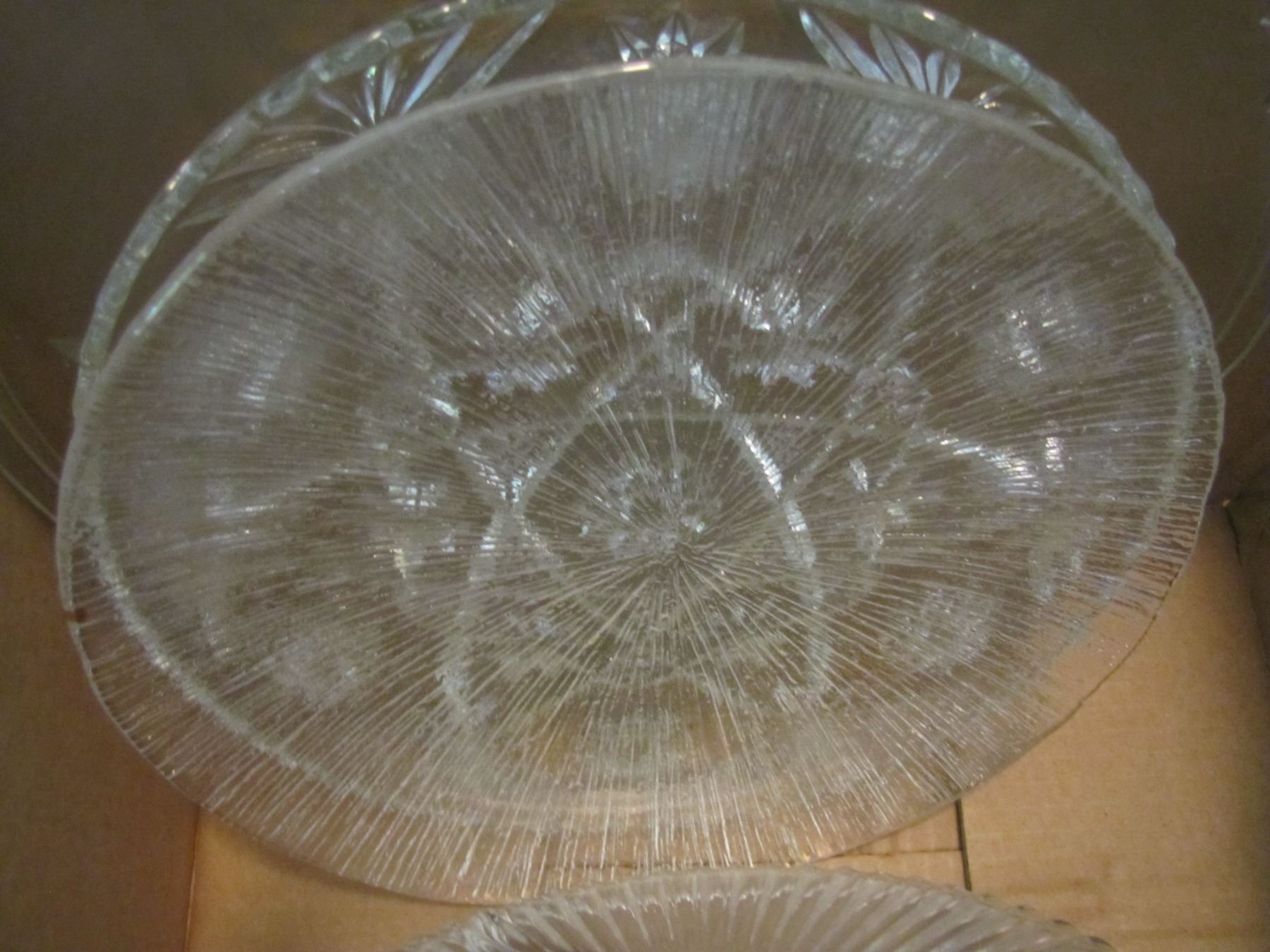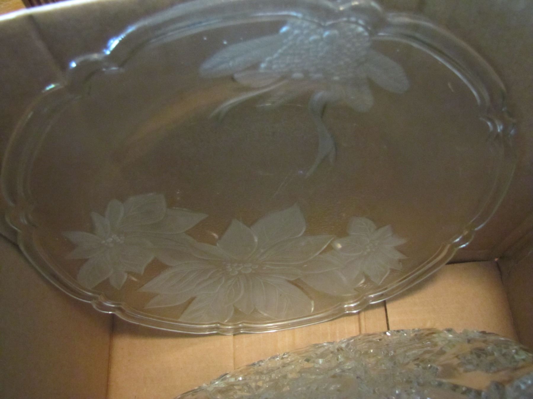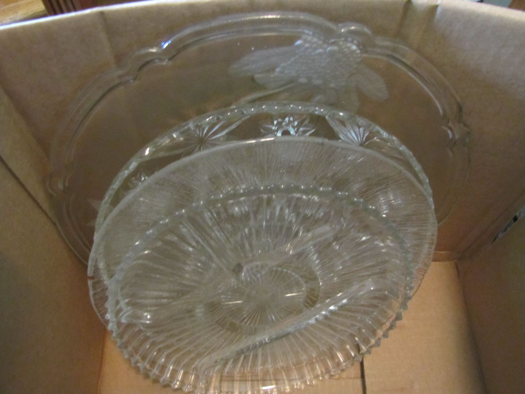 Box of serving platters and plates