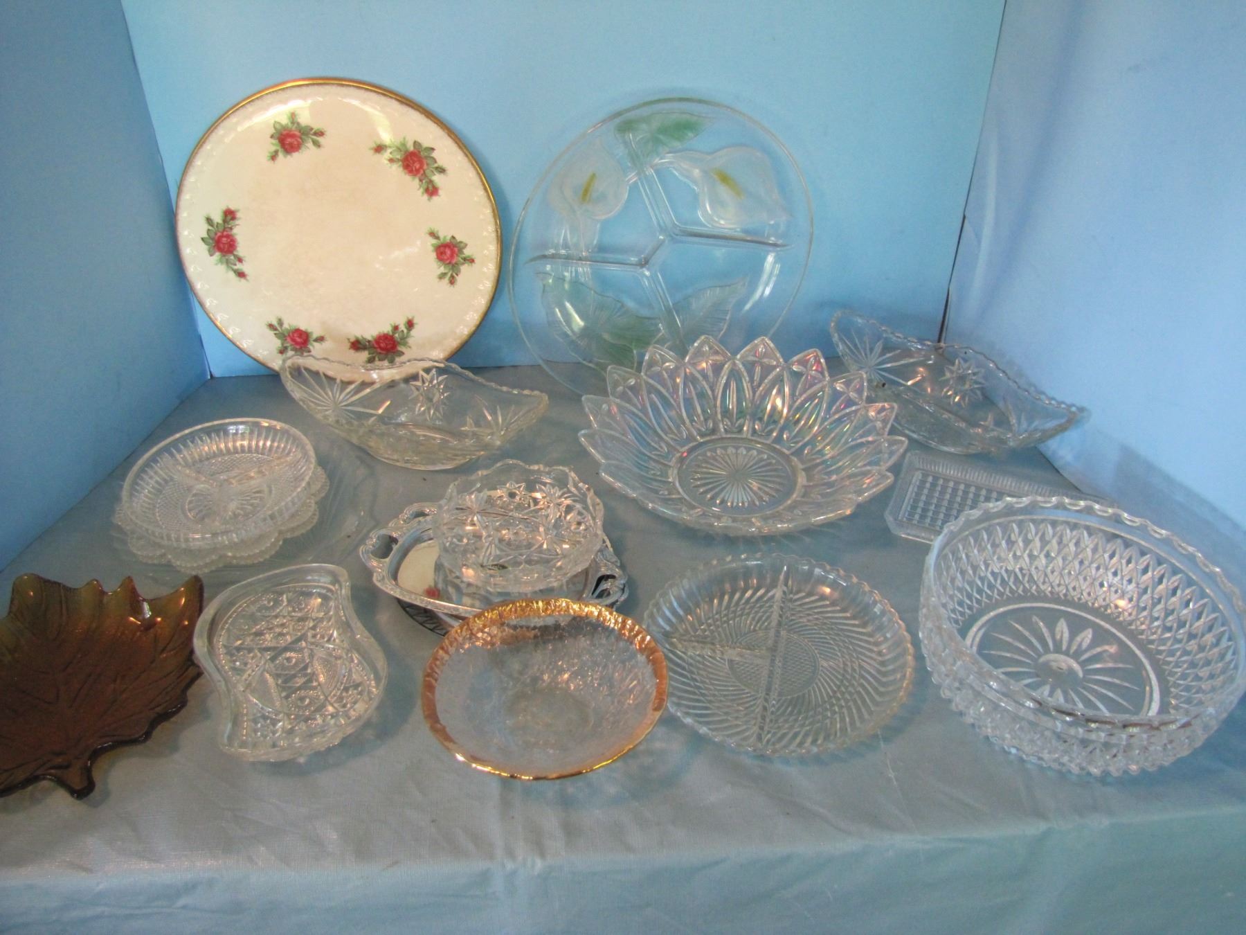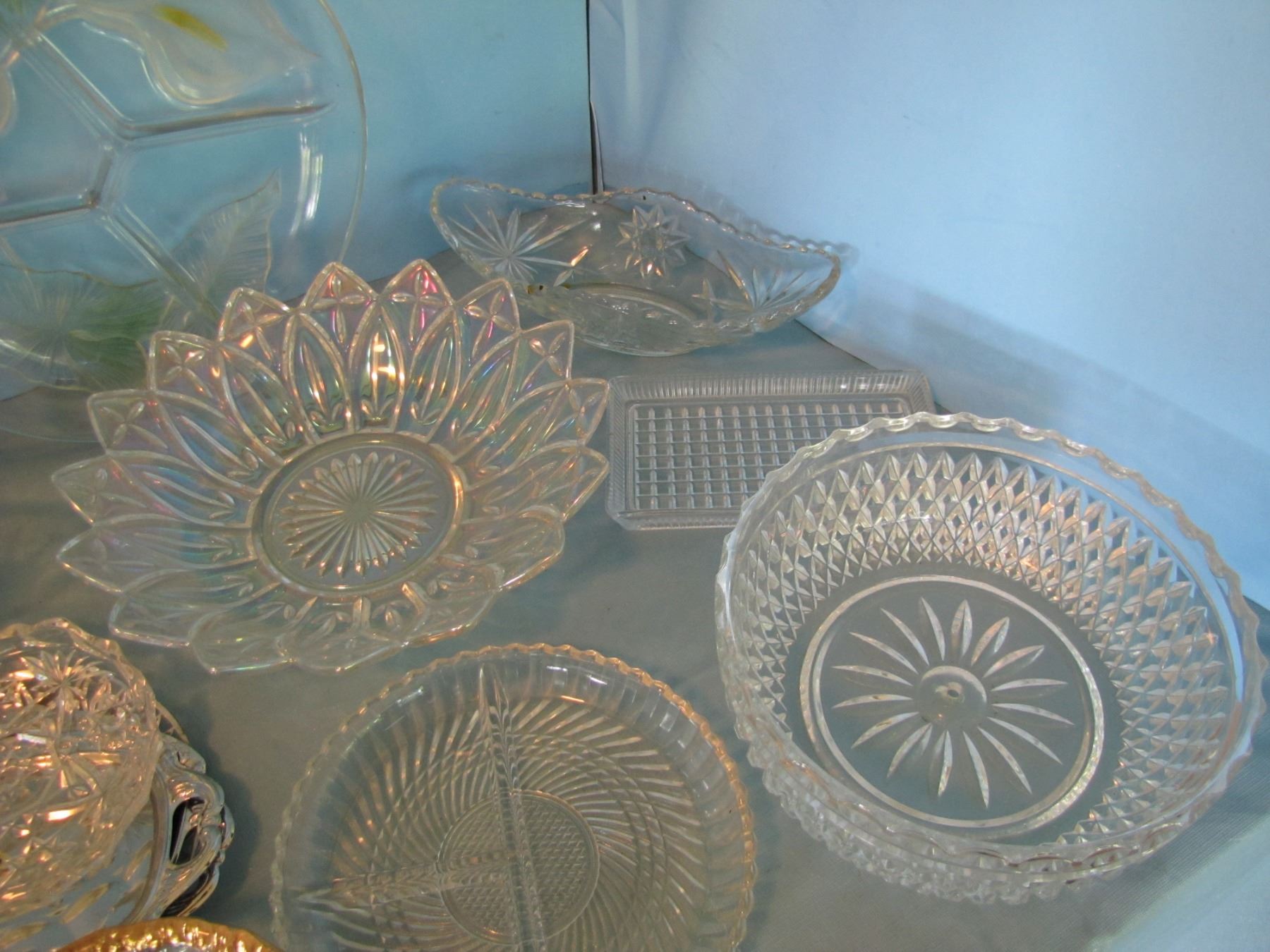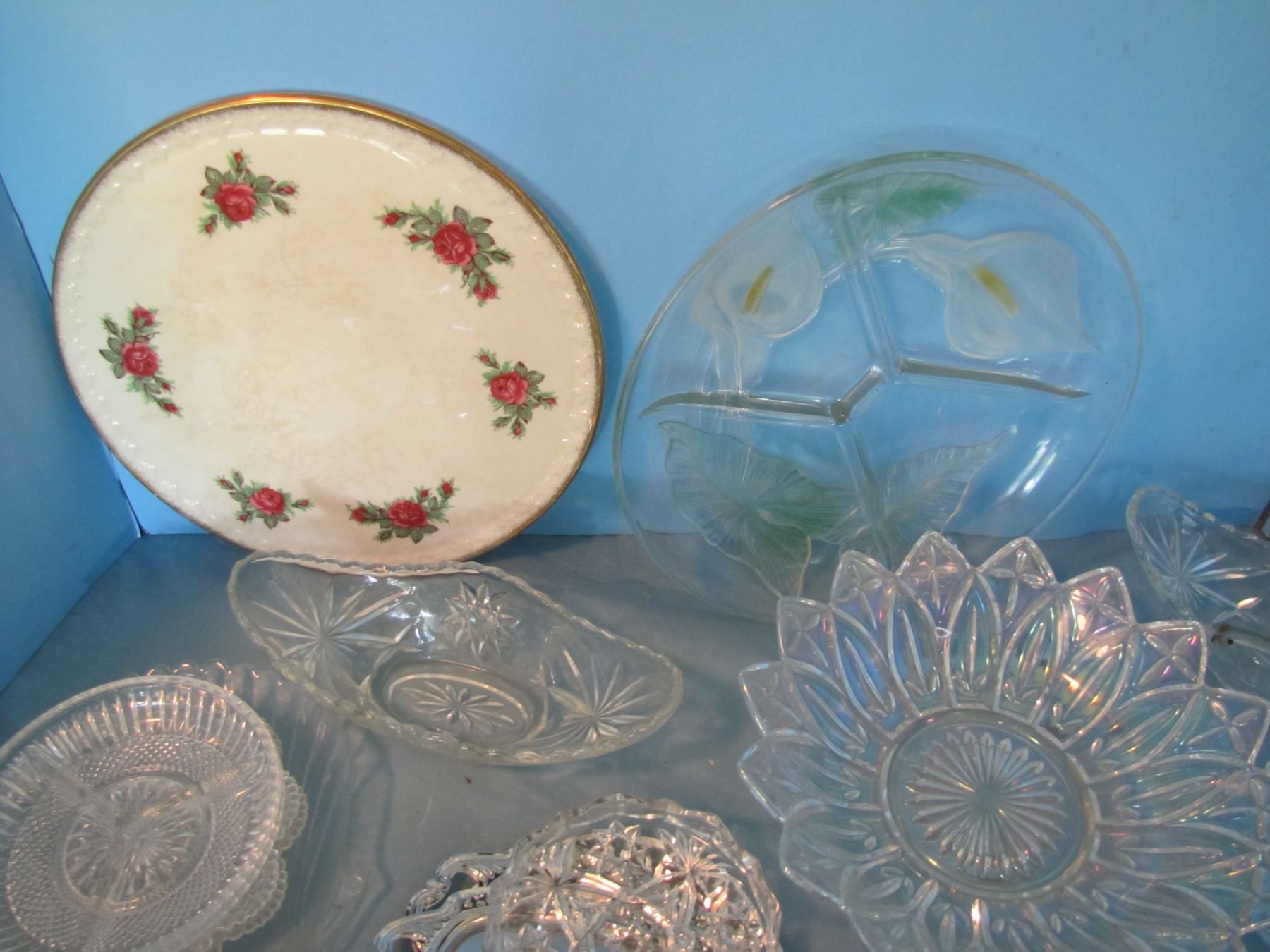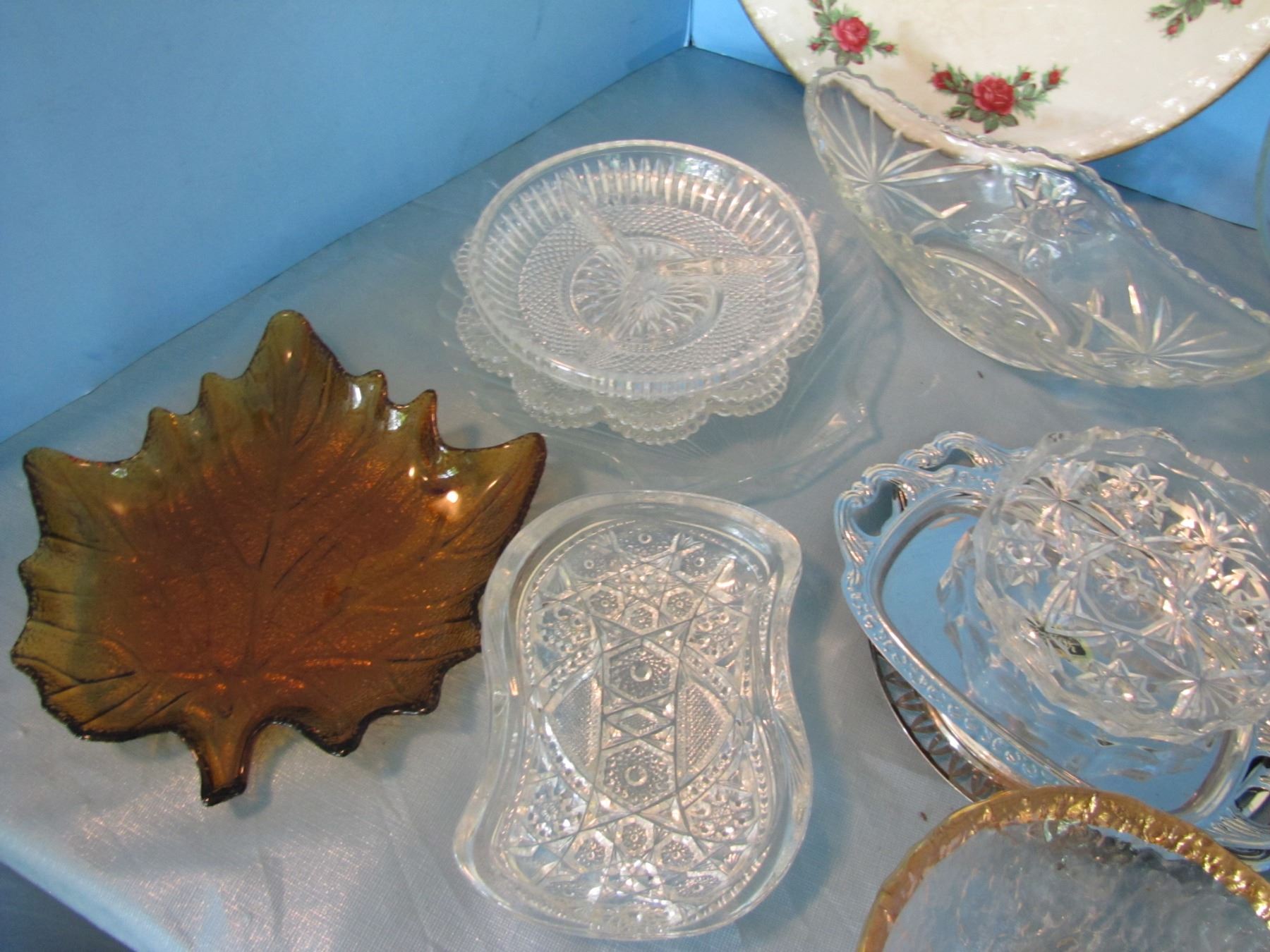 Box of serving platters and plates