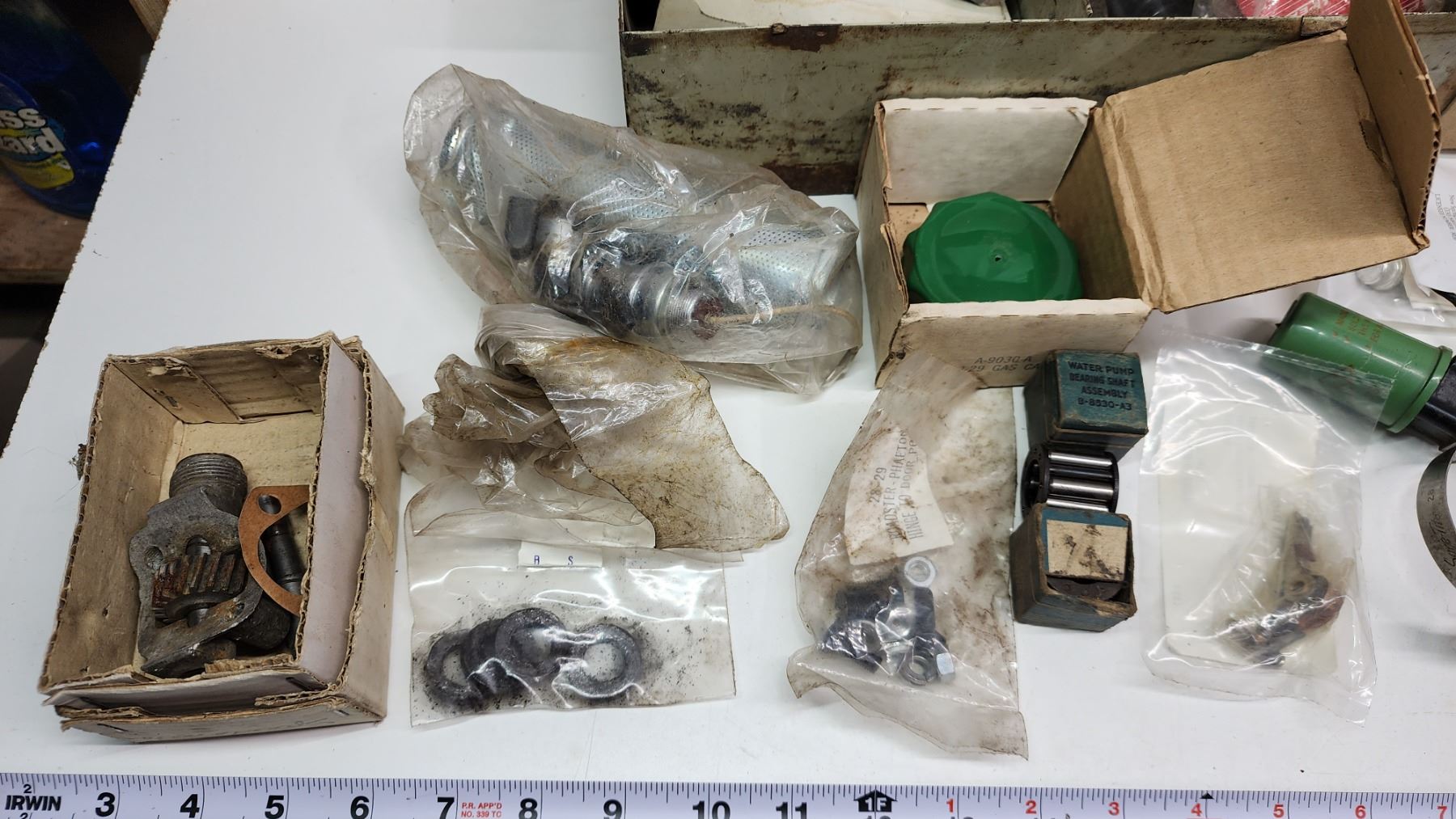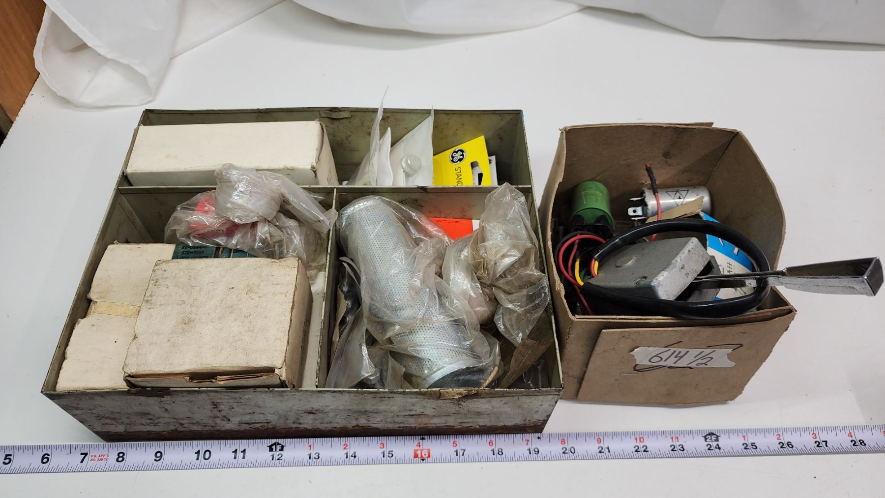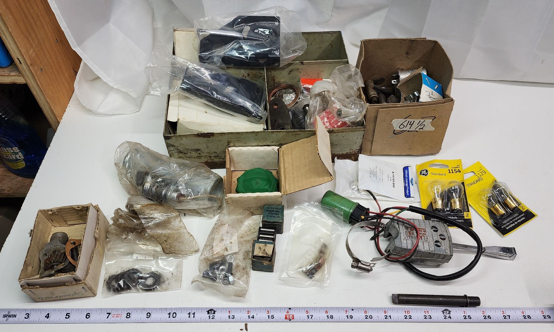 Box of various car parts - some new - light bulbs, washers, brackets, etc.