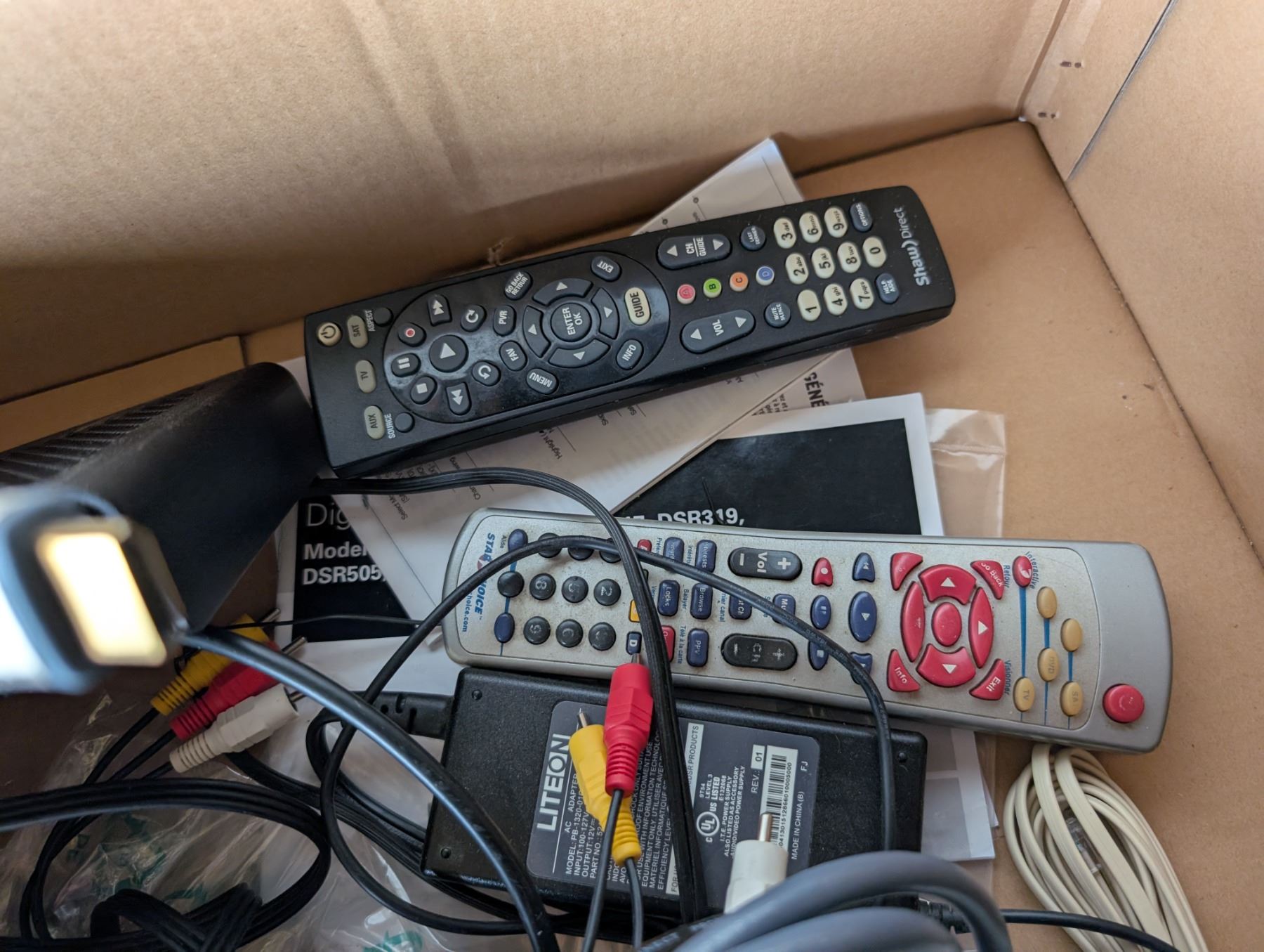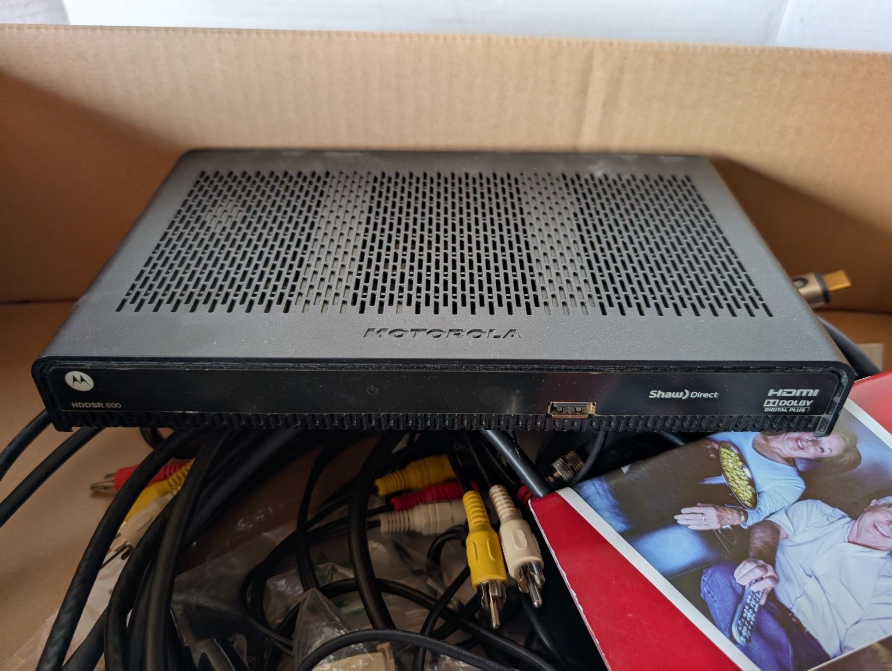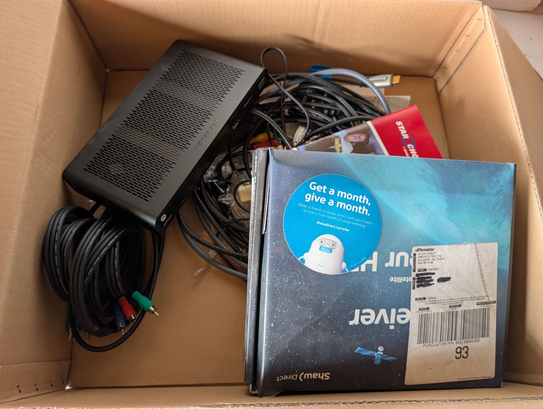 Box w/ Cable Boxes, remotes, HDMI Cords, and etc.