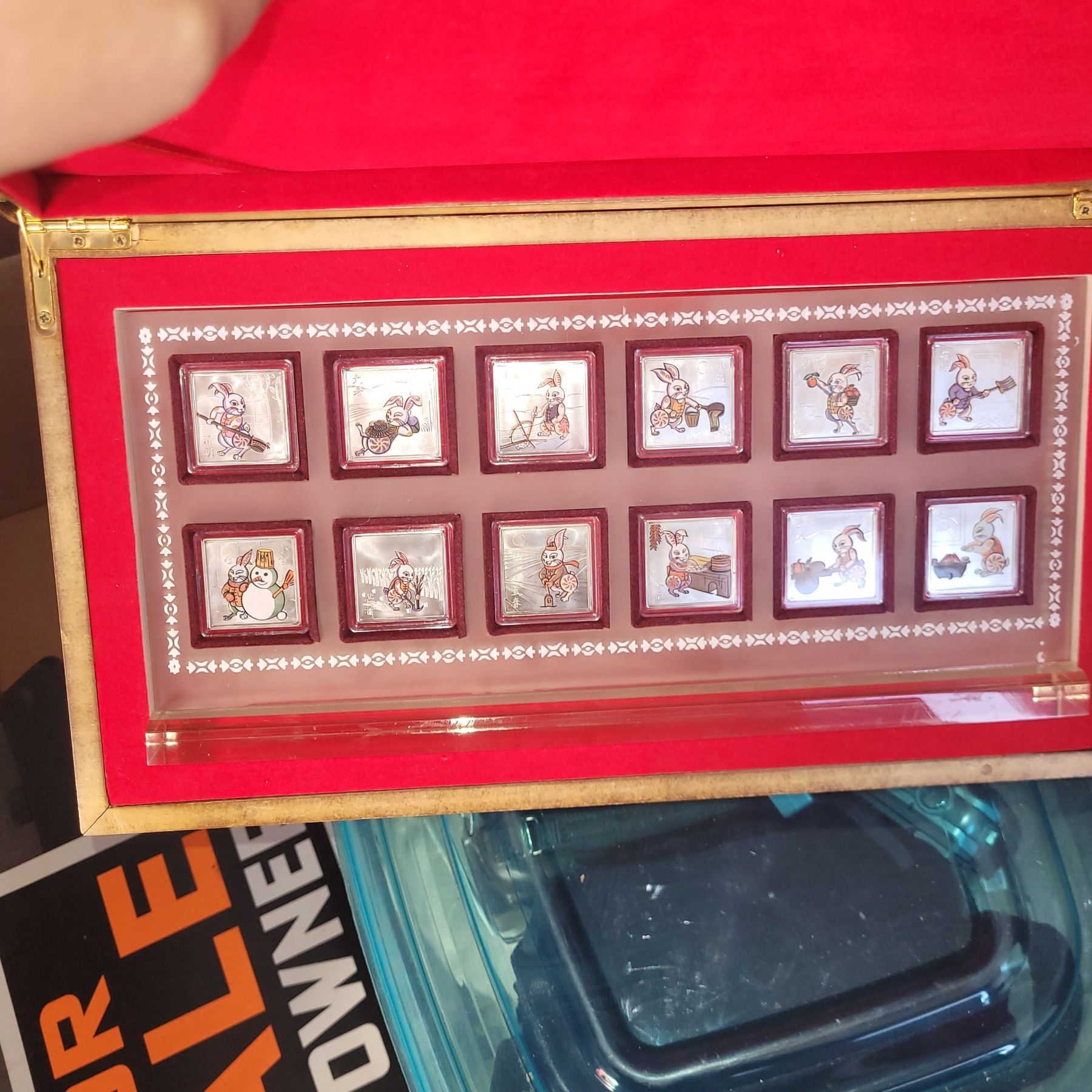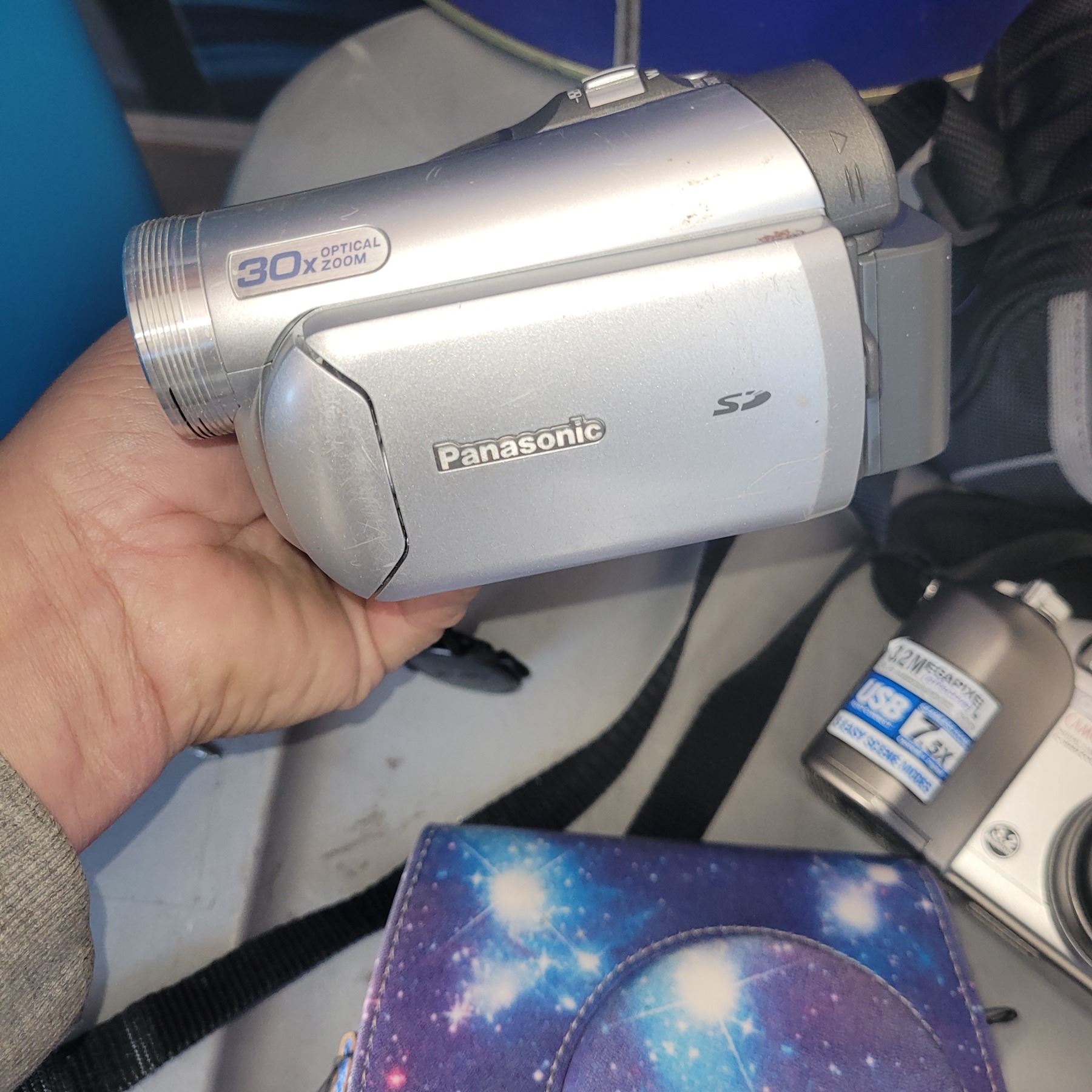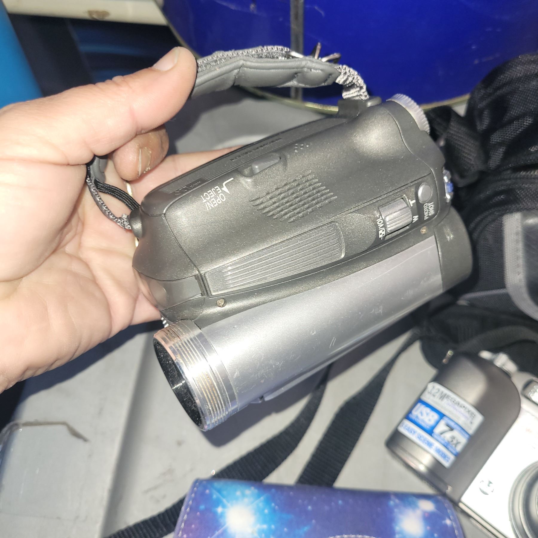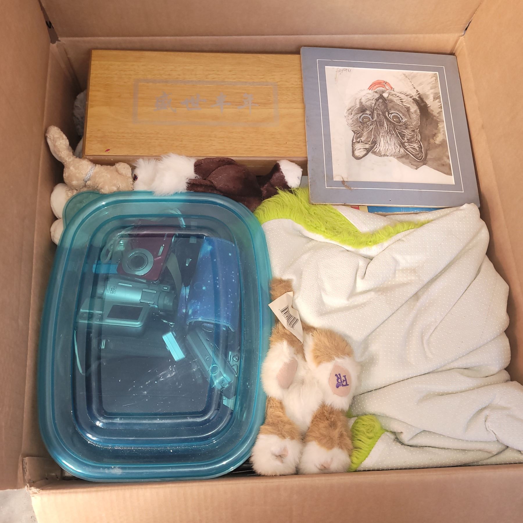 Box w/ Contents - Collectibles, Rabbit Silver Square, 11x Cameras, Camrecorder, Tins Jewellery ++