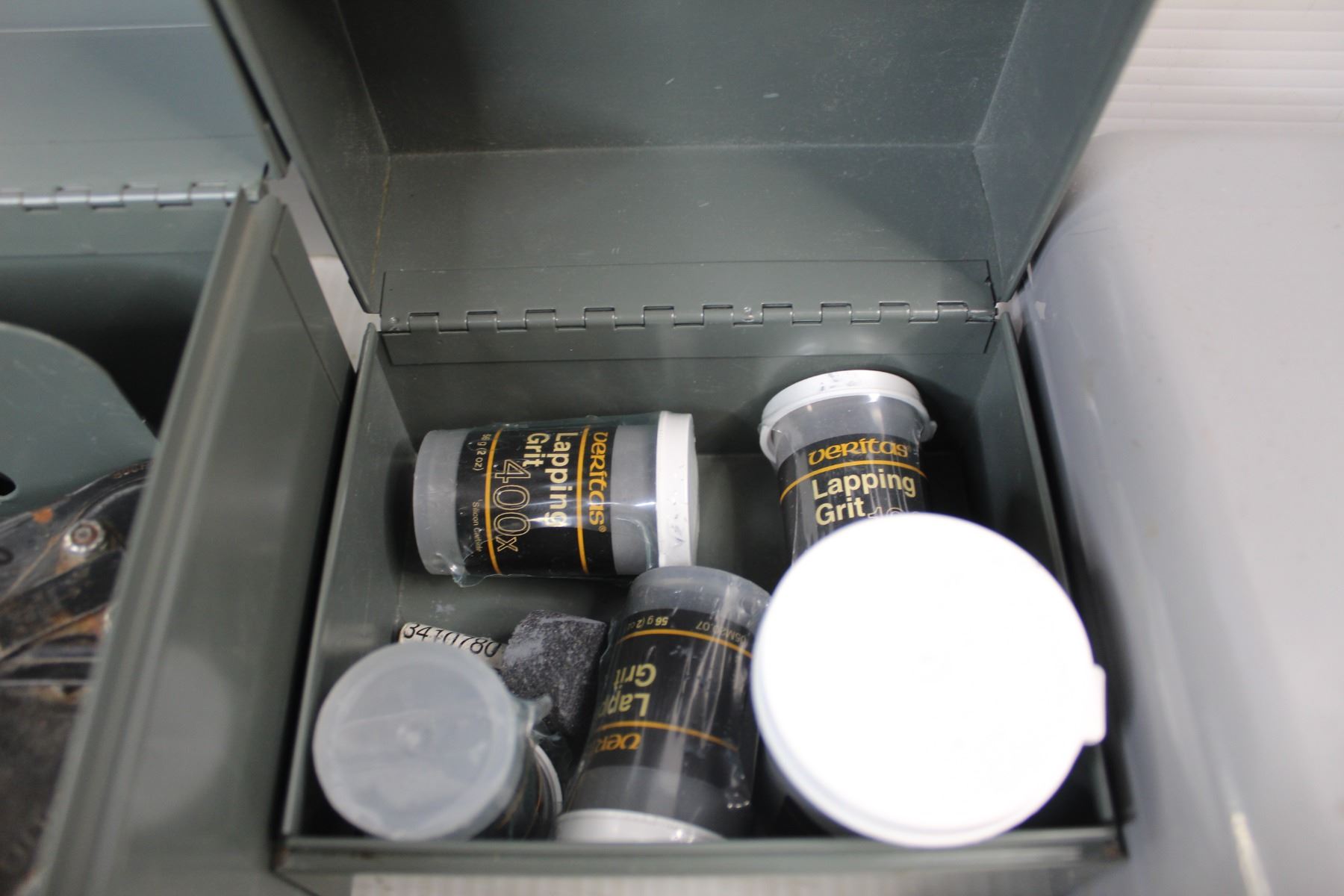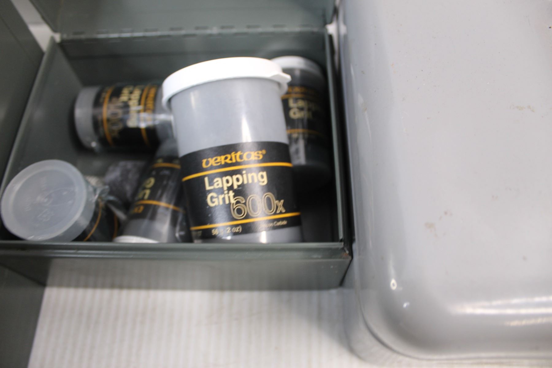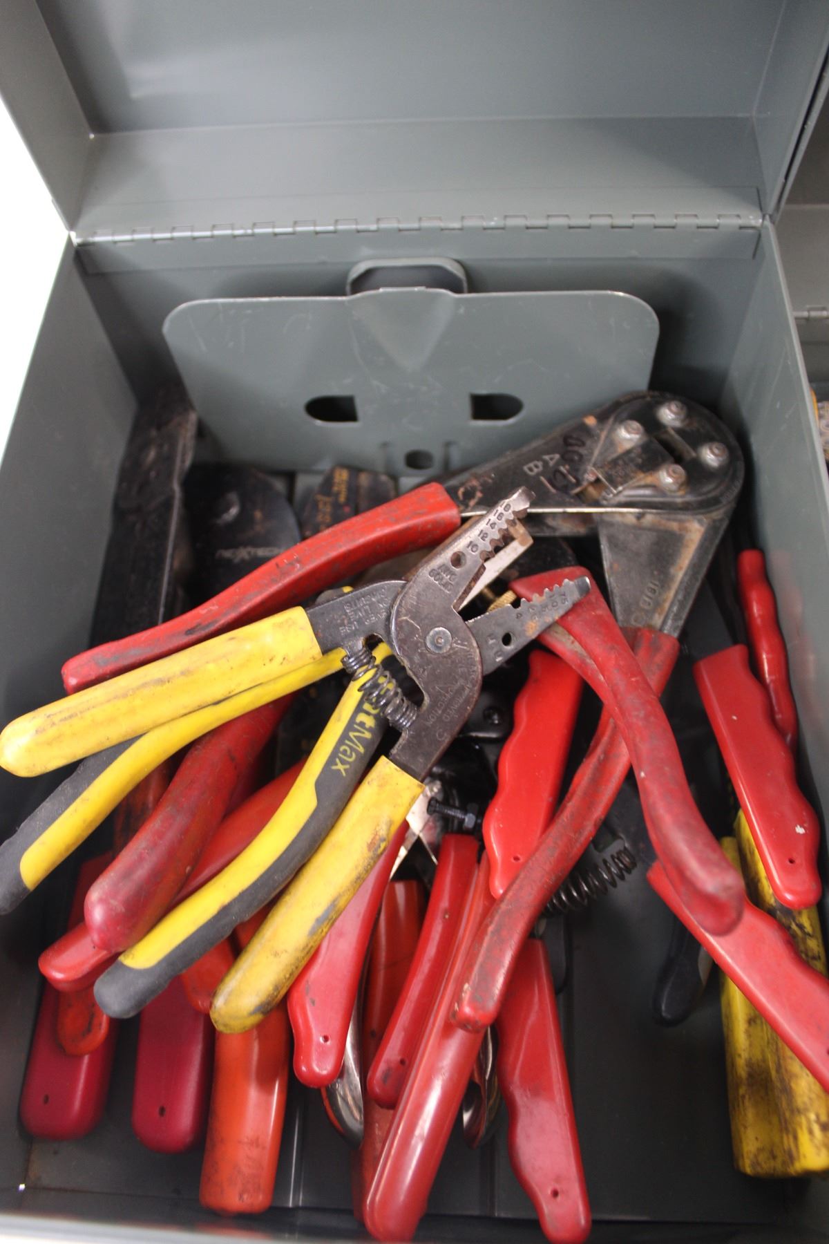 Box w/ Various Wire Crimpers/ Strippers, Lapping Grit, Cash Box