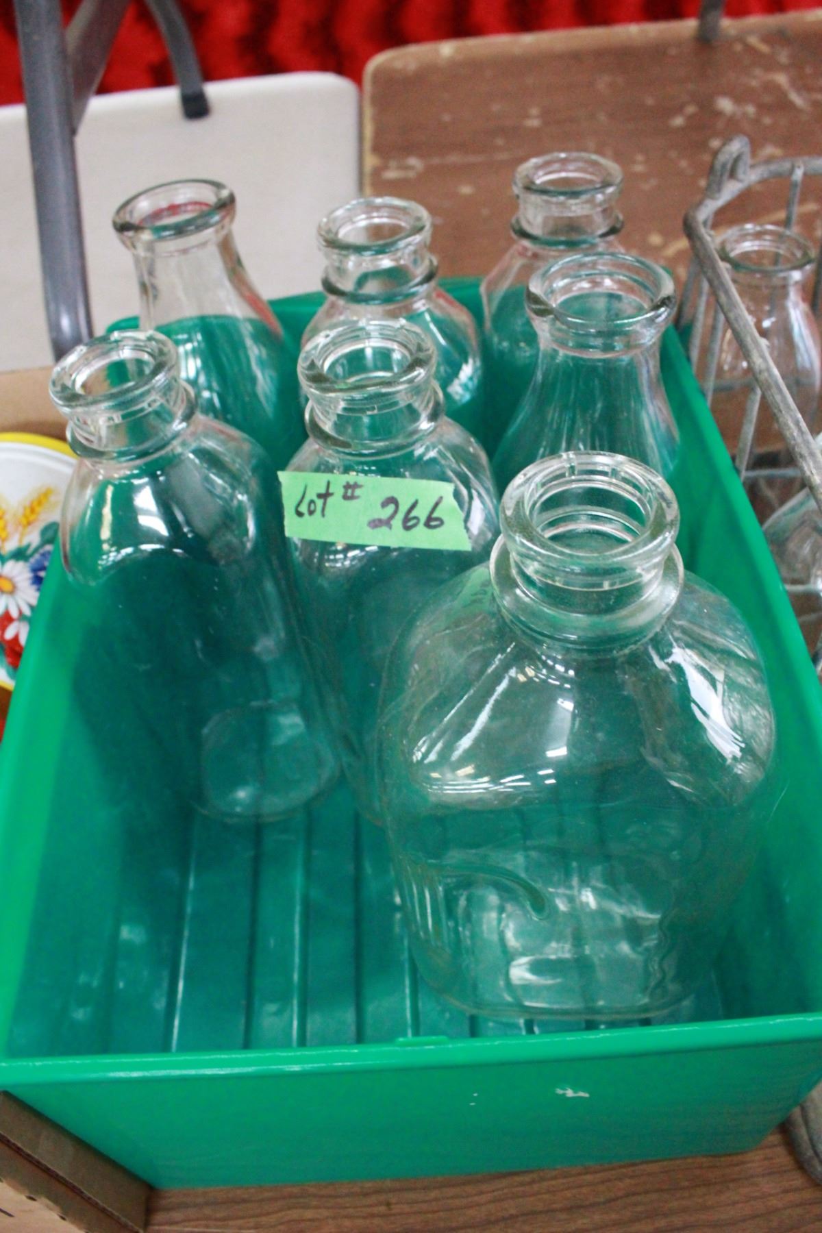 Box with (6) 1 Quart Milk Bottles and (1) 2 Quart Bottle