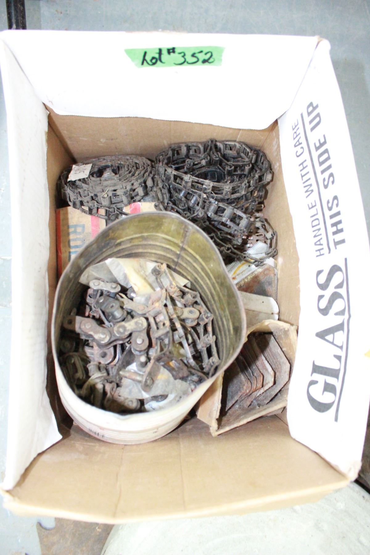 Box with Roller Chain and Chain Cup Links