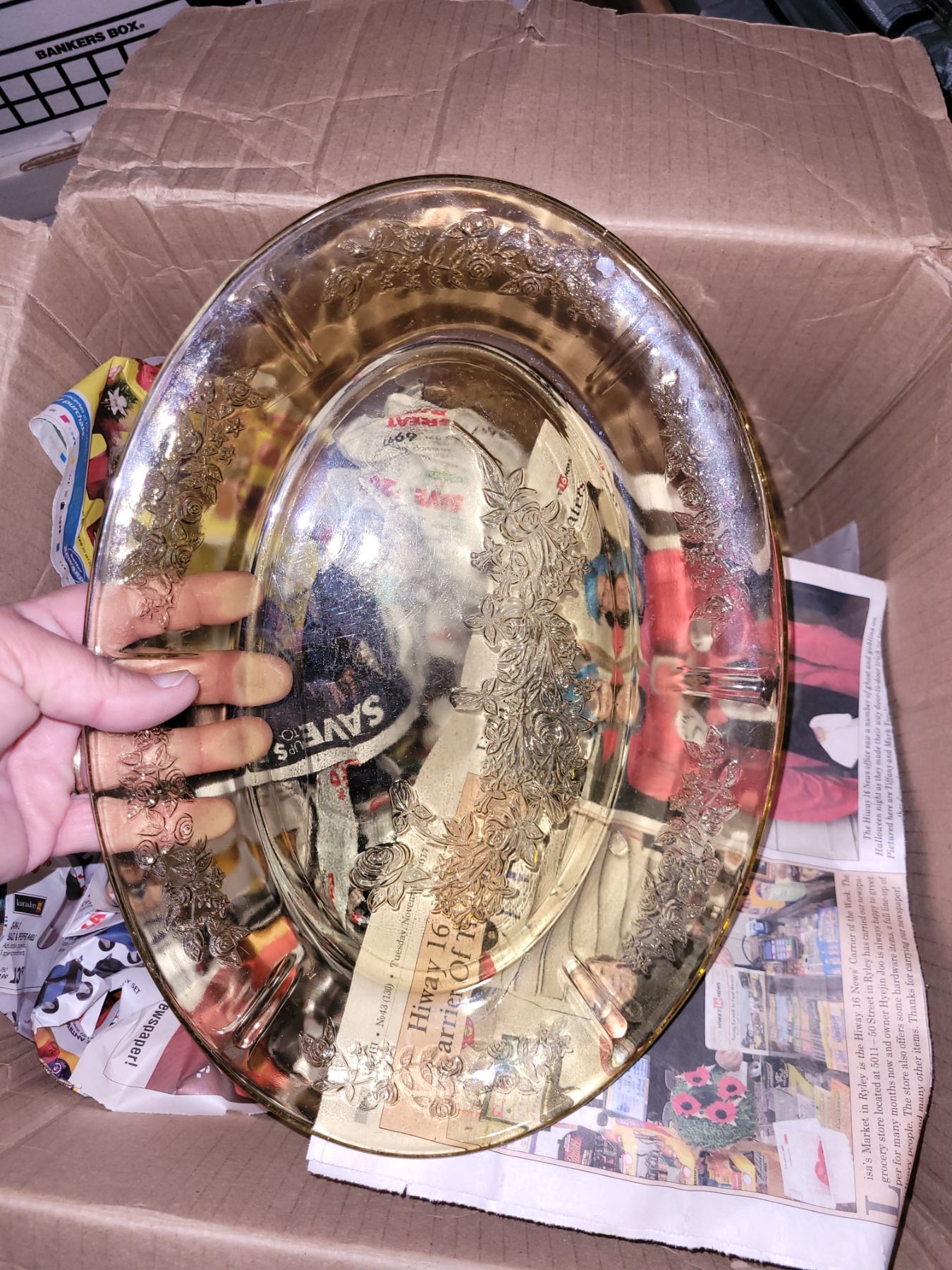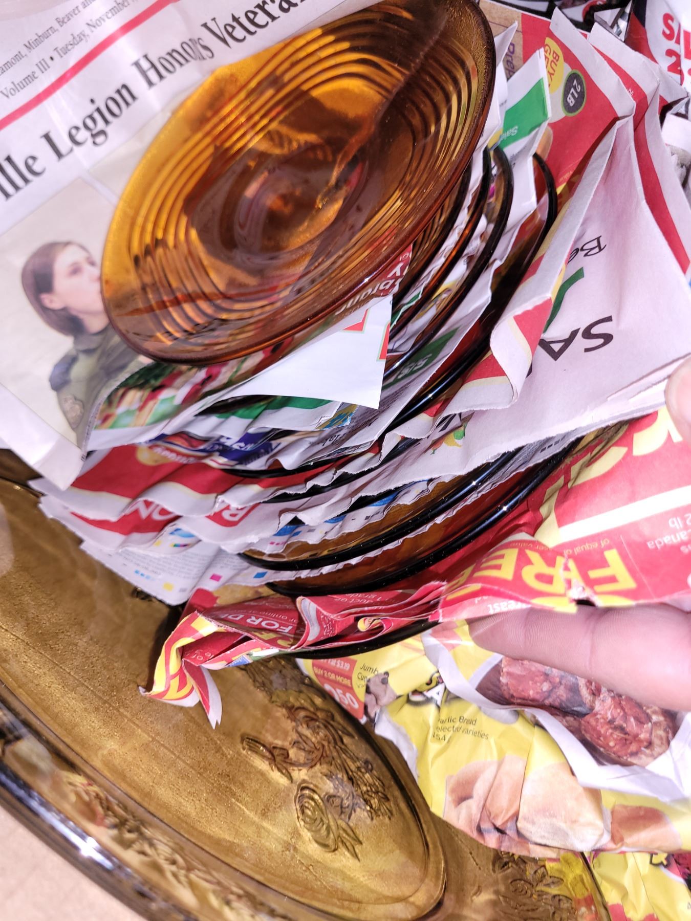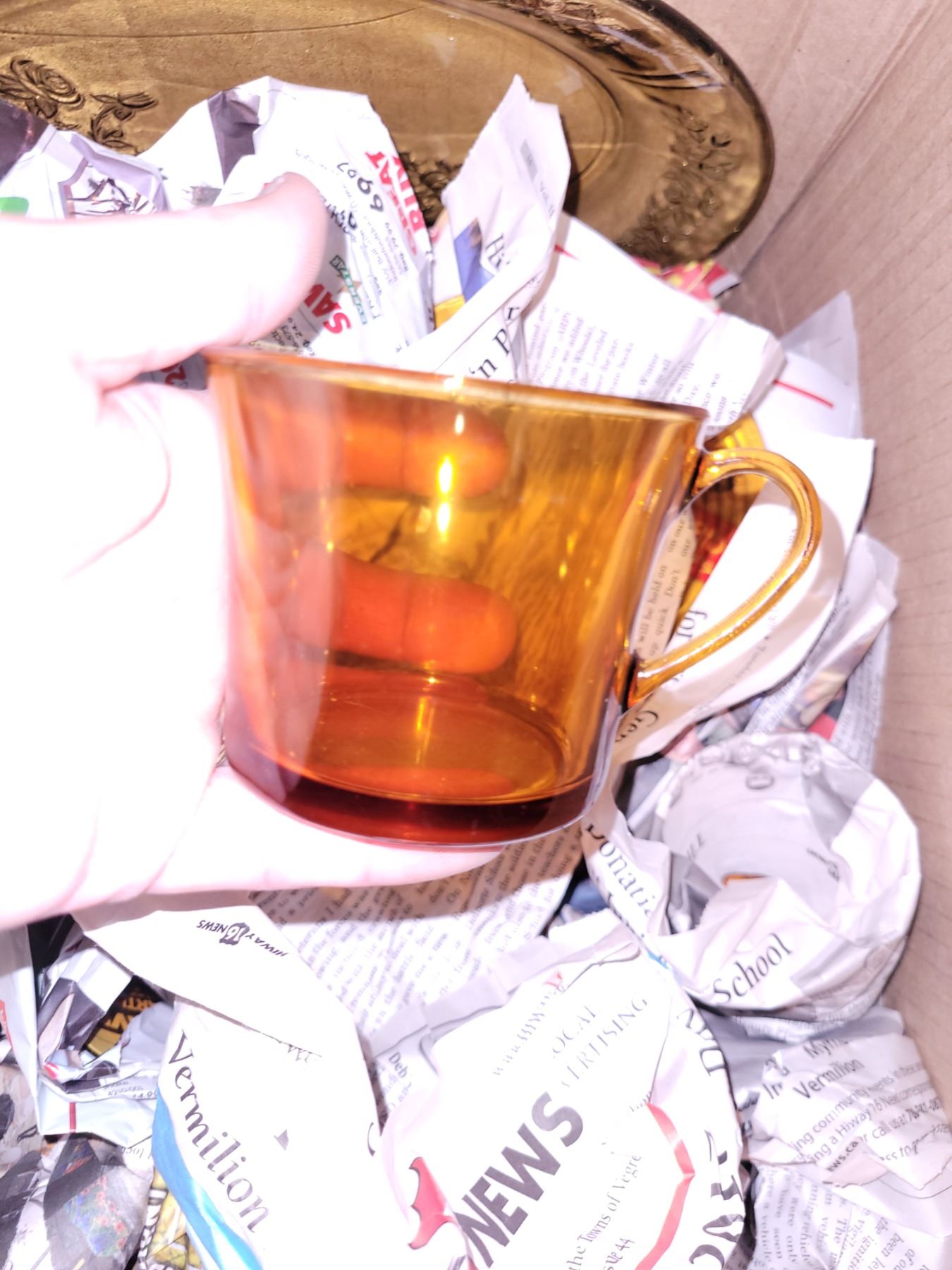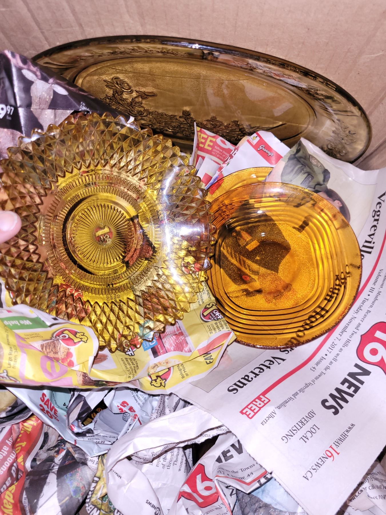 Box with Vintage Amber Glassware/Dishes