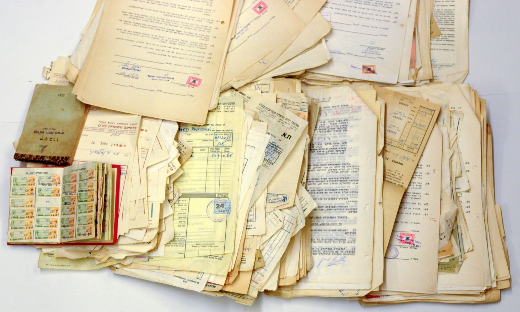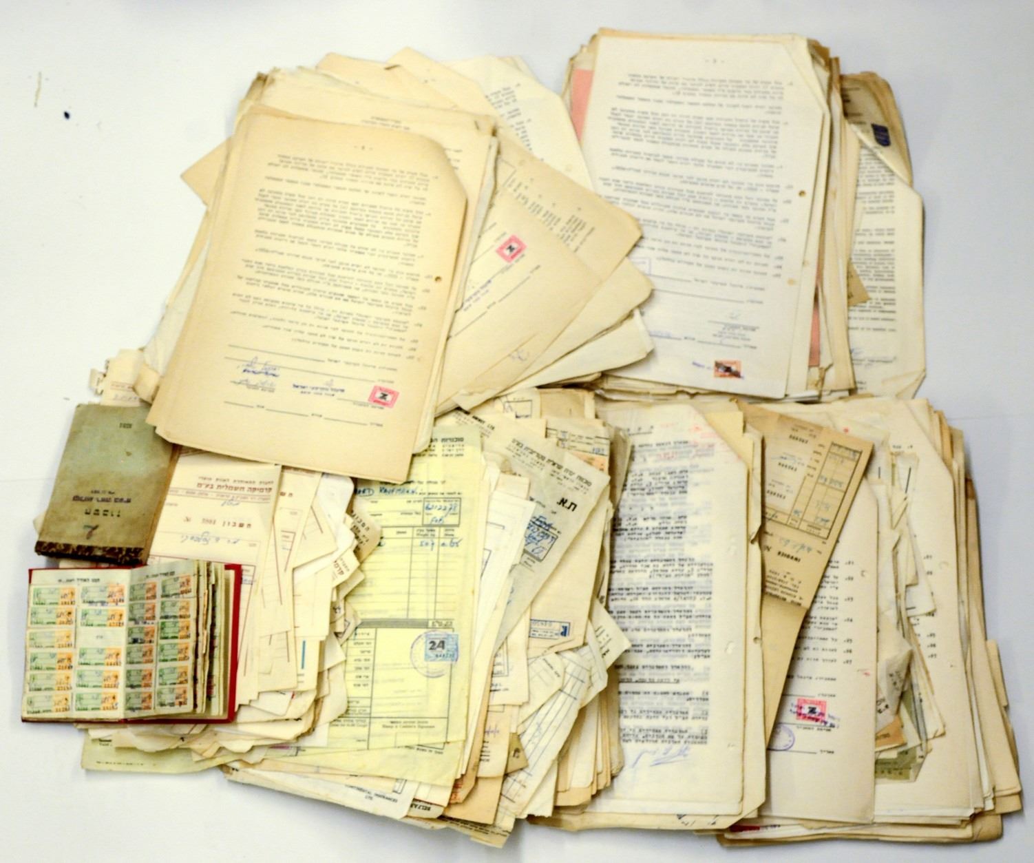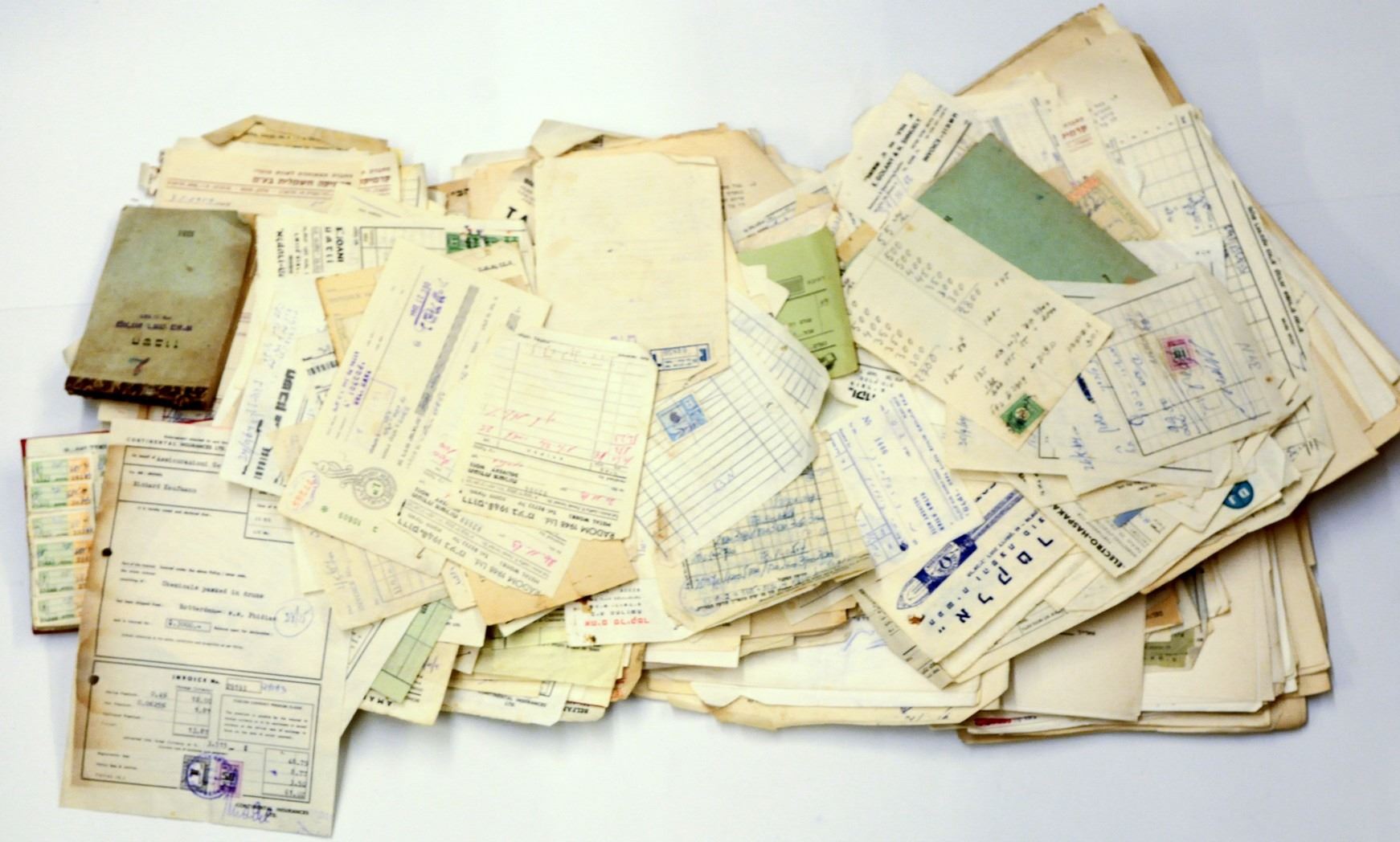 Box with a collection of bills, receipts and documents, most of them related to revenue stamps, 1950s-1970s, box is 36X28X16 cm.
