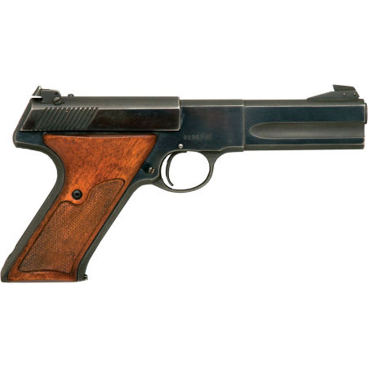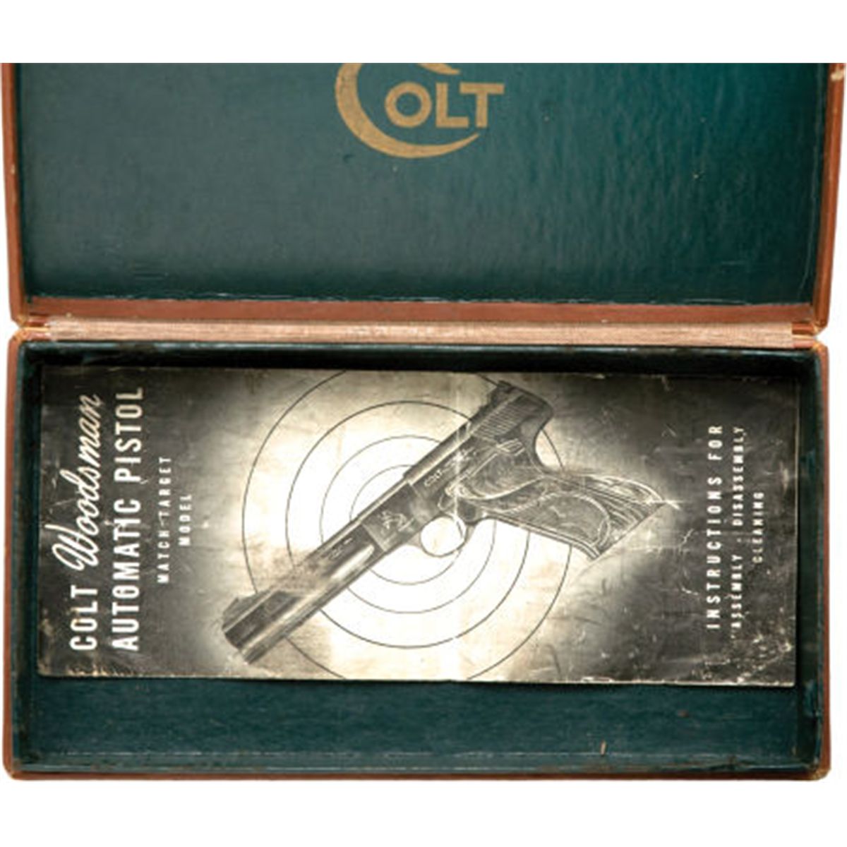 **Boxed Colt Woodsman Match Target Semi-Automatic Pistol. Serial no. 82367-S, .22 caliber, 4 1/2-inch barrel with target sights. Blued finish. Checkered walnut grips with integral thumbrest. Contained in original brown factory box together with factory literature. Condition: Excellent with scattered light wear to relief edges. Box with light wear and scuffs.