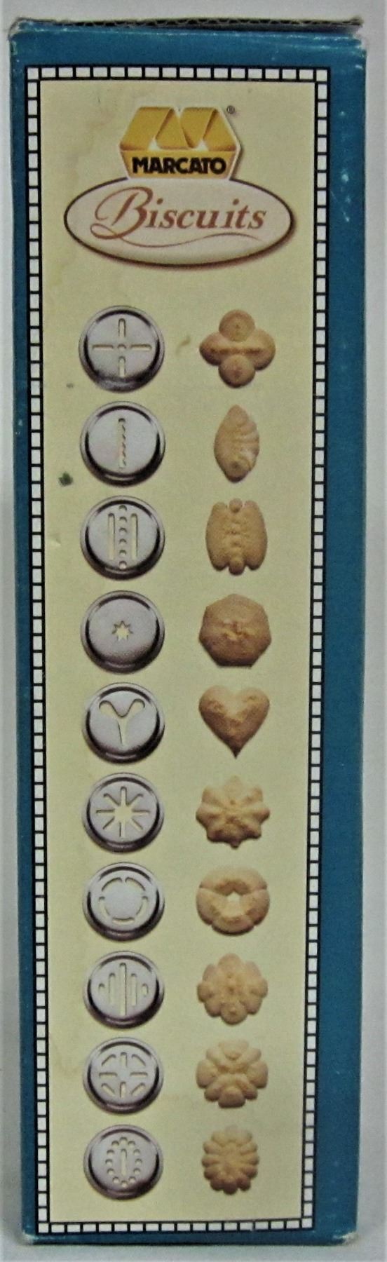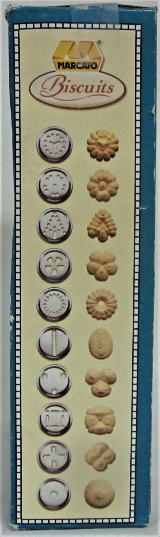 Boxed Italian Marcato biscuit maker (aluminum) + 20 assorted plates and instructions