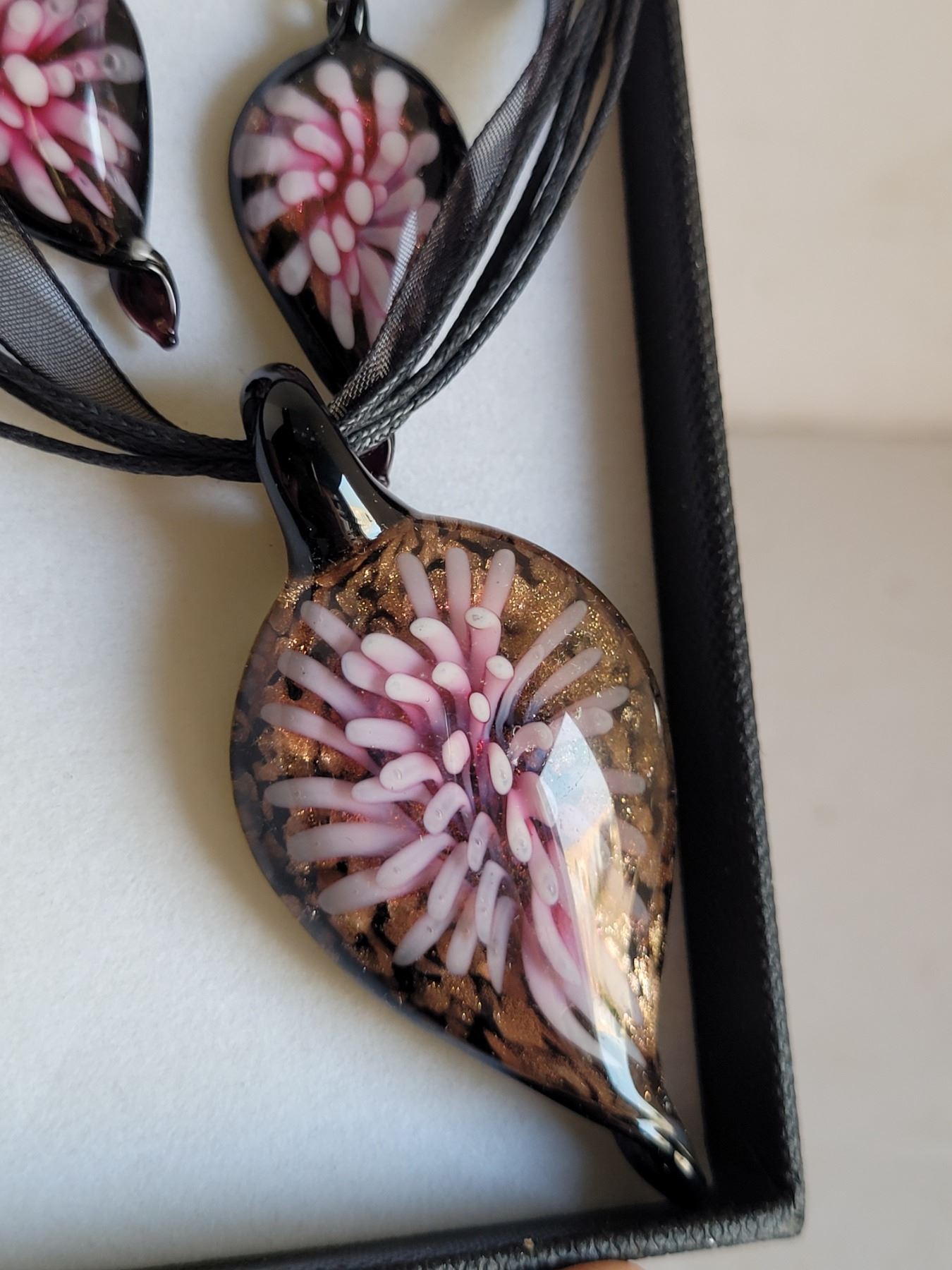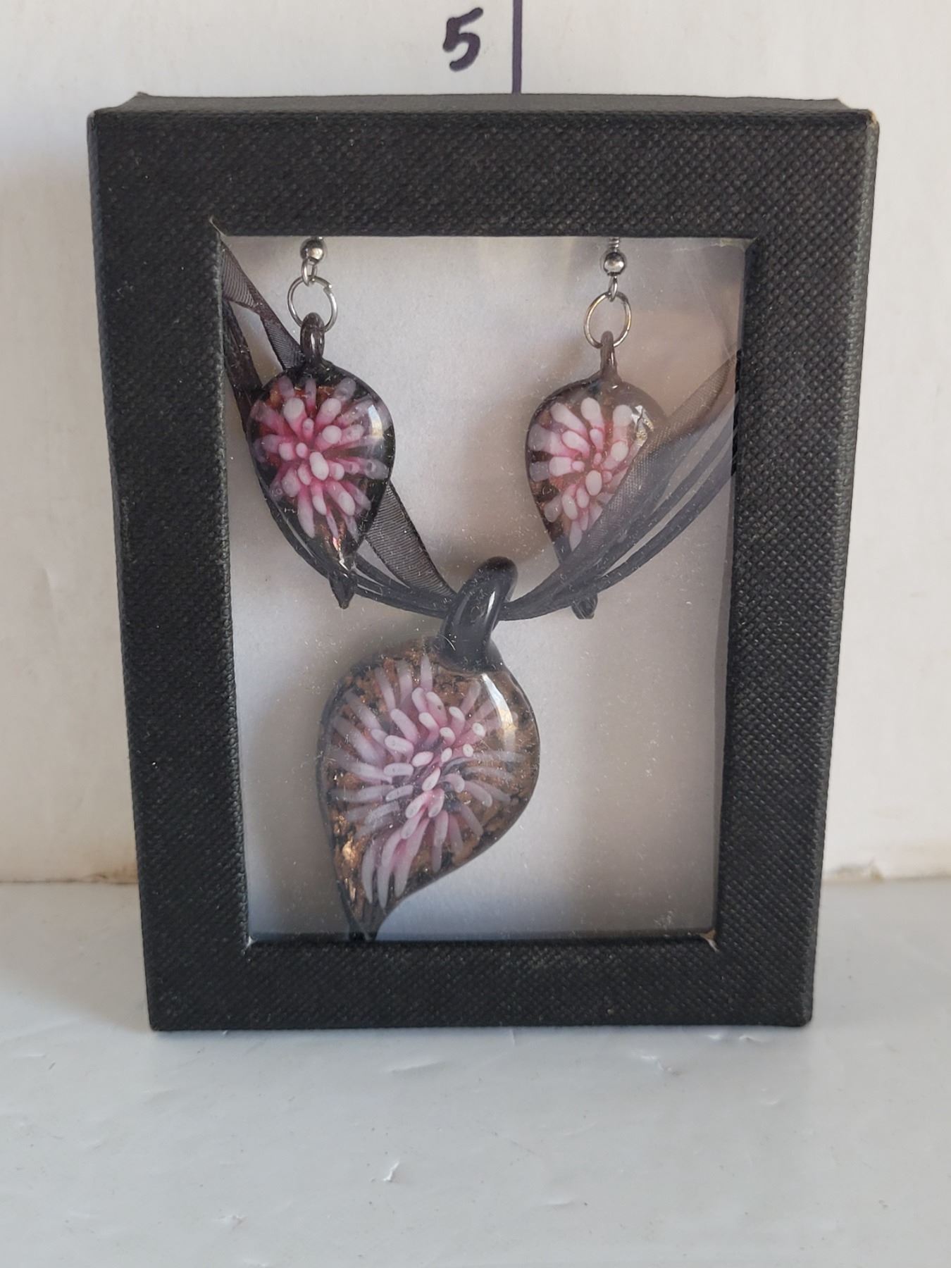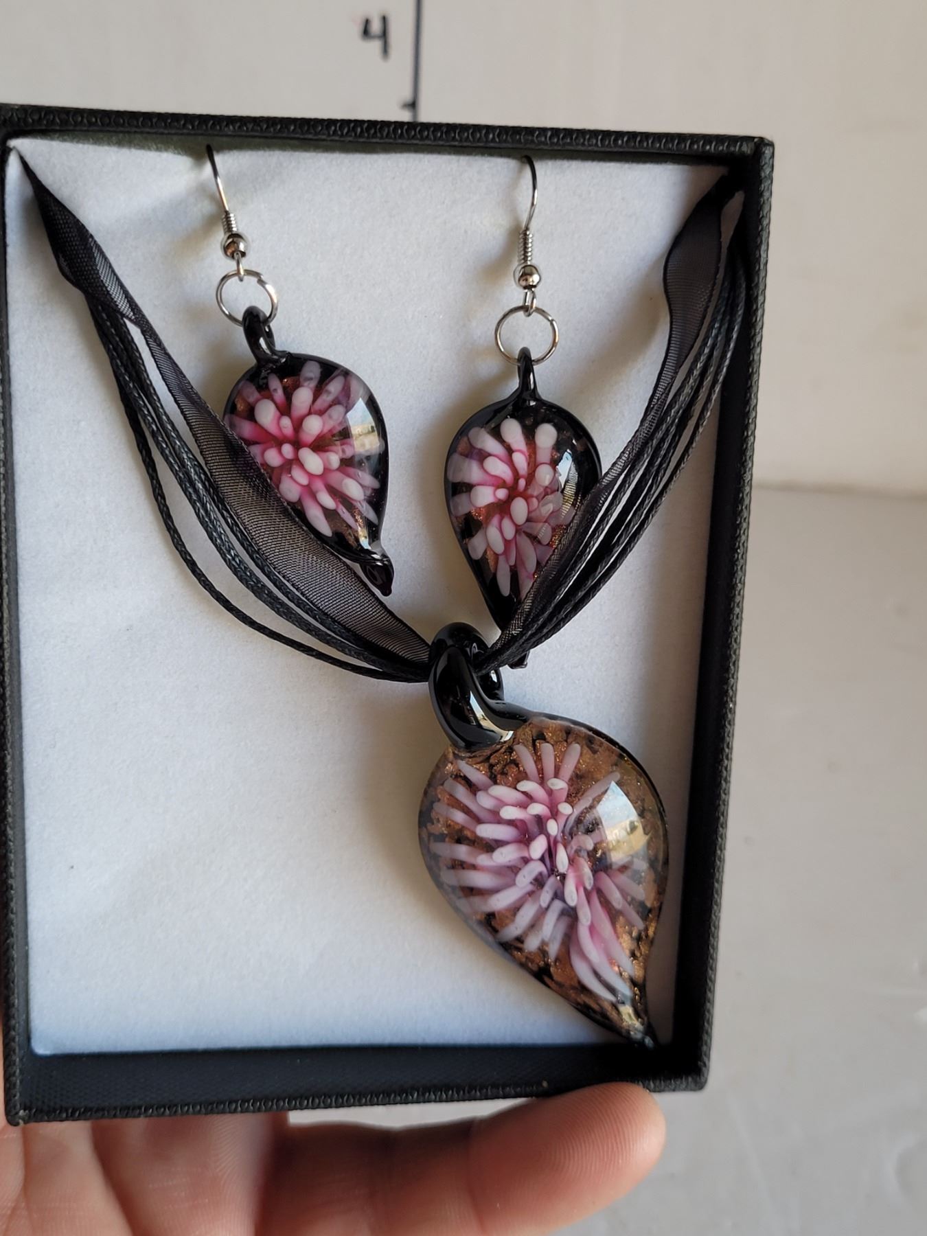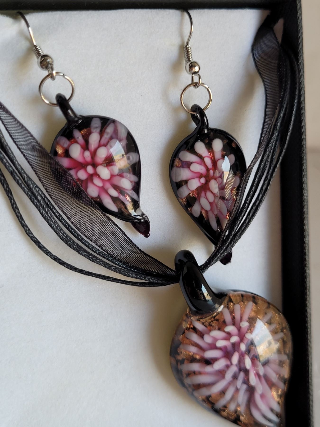 Boxed Set of Hand Blown Earrings & Necklace