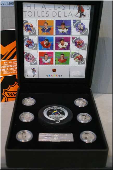 Boxed set of NHL All Stars 2003 commemorative stamp and medallion set