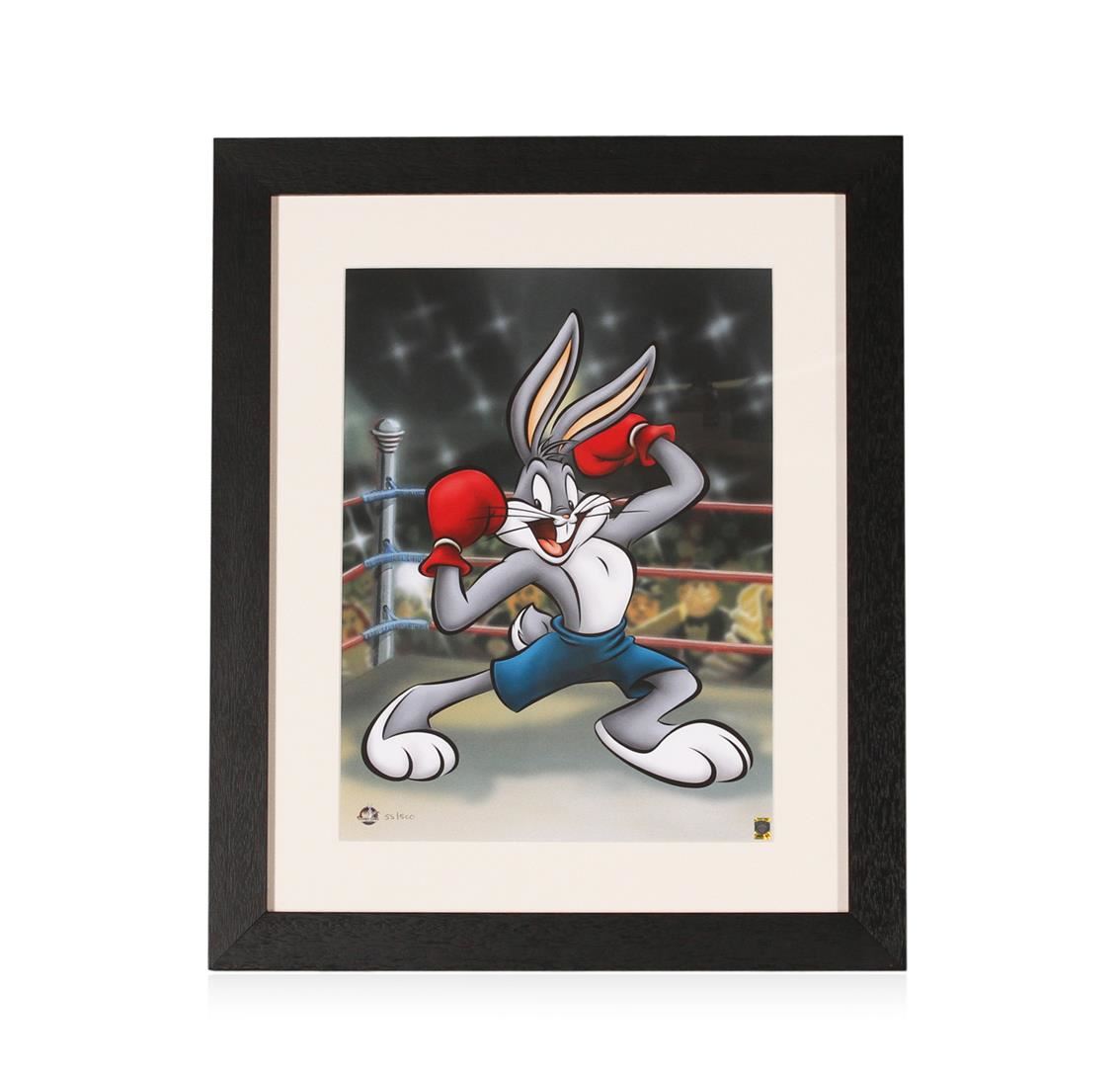 Warner Brothers has licensed and authenticated the classic Bugs Bunny image from his cherished cartoon series. Produced as a limited edition giclee on mylar paper, and beautifully framed in black wood, Boxer Bugs reminds us of why this cartoon character is an American icon.