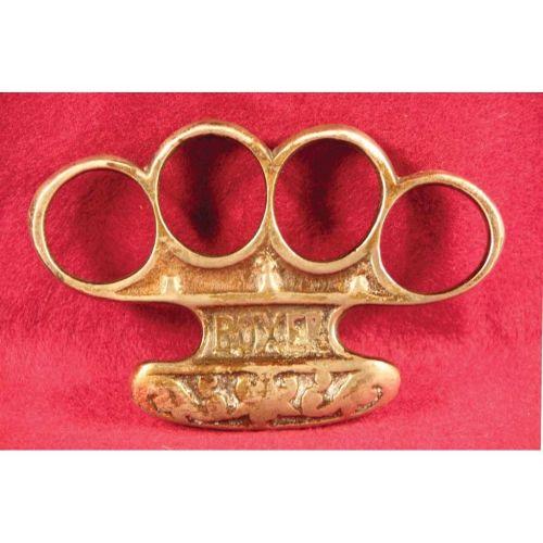Boxer Set of nickel plated cast iron brass knuckles. Some of the original nickel has worn off otherwise excellent condition. 4 inches wide.