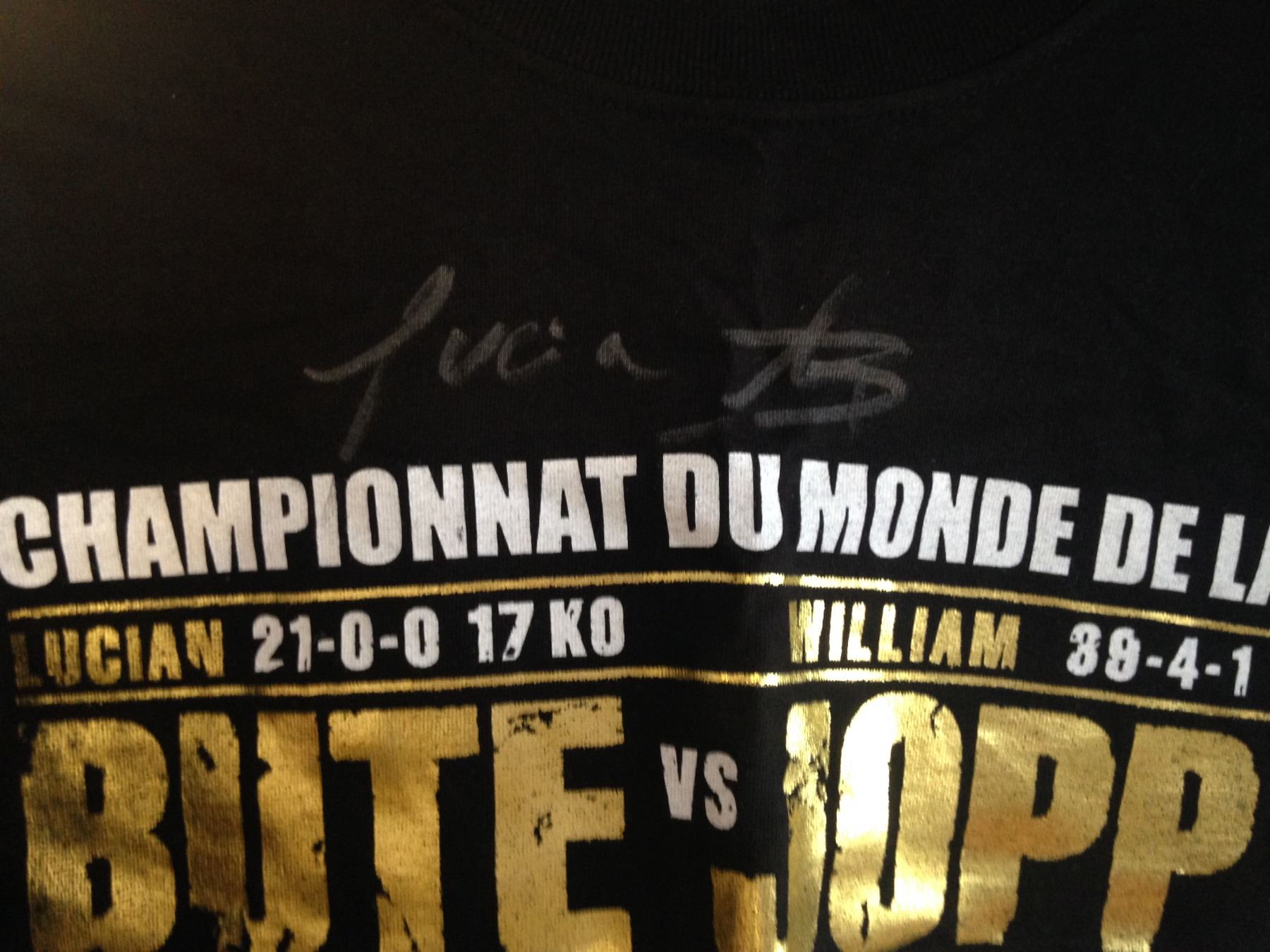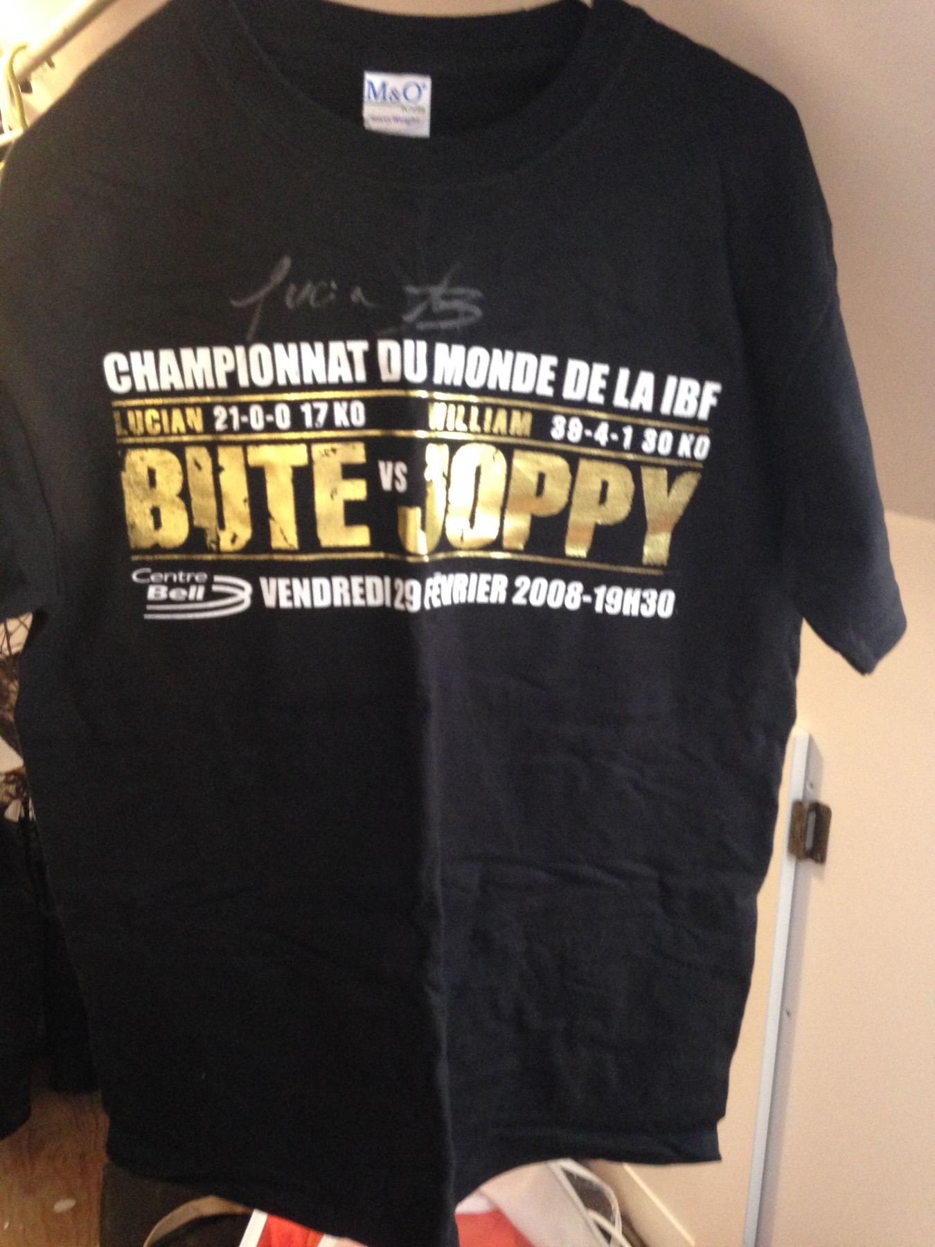 Boxing IBF World Championship Lucian Bute vs William Joppy Signed T-Shirt (Lucian Bute Autograph) And Cap