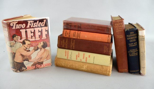 Boxing books including The National Sporting Club Past and Present (1901), Two Fisted Jeff (1929), My Fighting Life (1920), The Roar of the Crowd (1925), Epics of the Fancy, Kings of the Ring, Fifty Years In The Ring (1933), Ruby Robert (1926) & others, all hardback (50+)