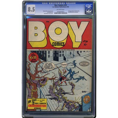 <B>Boy Comics #29 (Lev Gleason, 1946) CGC VF+ 8.5 Off-white pages.</B></I> Charles Biro cover. Dick Briefer art. Overstreet 2006 VF 8.0 value = $153; VF/NM 9.0 value = $227. CGC census 1/06:1 in 8.5, 1 higher. <I>From the Collection of Harold Curtis.</B></I>