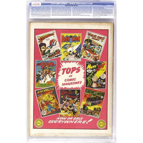 <B>Boy Commandos #1 (DC, 1942) CGC FN 6.0 Off-white pages.</B></I> This book is everything the Simon and Kirby fan could ask for, starting with the classic cover. It even has appearances by other S & K characters, namely the Sandman and the Newsboy Legion. Note that a small plastic stabilizing peg is loose inside the CGC holder, not affecting the comic itself or the integrity of the holder. Overstreet 2006 FN 6.0 value = $1,563. CGC census 5/06: 1 in 6.0, 15 higher. <BR><BR><B>Important notice:</B> Heritage usually auctions material at the rate of 200-250 lots per hour. On some occasions eBay Live bid software or the Internet may not be able to keep up with the pace of the auction. We recommend placing a realistic absentee bid now as insurance to avoid disappointment. Occasionally the auctioneer may eliminate or reject an eBay Live bid, and the auctioneer may also reopen a lot after the close of the eBay live bidding (usually because we missed an audience bid), and may reject your bid even if it shows you as the winning bidder. By bidding via eBay Live, you agree that Heritage may award the lot to another bidder at its sole discretion under the circumstances described above or any other reasonable circumstances. Since eBay bids are not shown to us until we open the lot on the floor, we treat those bids just like floor bids. In most cases the floor responds before the eBay bid is presented to us, due to Internet lag time, so for consistency we have made it a policy that floor bids are always considered first over tie eBay live bids. Also please note that all Heritage lots purchased through eBay Live carry a 22.5% Buyer's Premium. Please make sure you read the Terms and Conditions before you bid. This lot is being auctioned in conjunction with a live floor auction by Heritage Auction Galleries. All final auction and invoice information will be supplied by Heritage Auction Galleries, and all other information should be considered preliminary. Lot:41001 <BR><BR><B>Winning Notification and Billing:</B> After the FINAL session in this auction is complete, Heritage will send e-mail and snail mail invoices. This process normally takes several days. All final auction and invoice information will be supplied by Heritage Auction Galleries, and all other information should be considered preliminary. <BR><BR>This auction will be conducted on a live auction floor and over the Internet through eBay Live. If you choose to place an absentee bid, please take a moment to <font color='#0000ff'><u><a href='http://pages.ebay.com/liveauctions/help/before/laabsentee.html'>learn how eBay Live absentee bidding works</a></u></font><font color='#000000'>