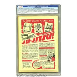 <B>Boy Commandos #4 (DC, 1943) CGC VF+ 8.5 Cream to off-white pages.</B></I> Though D-Day was almost a year away in the real world, the Boy Commandos were already storming the beaches in '43! The "Special Invasion Issue!" was spearheaded by Joe Simon and Jack Kirby, who not only drew the cover but also provided interior art as well. The book is also notable for its unusual blue-on-black title design. As of this writing, only one copy of this issue has received a higher grade from CGC. Overstreet 2004 VF 8.0 value = $500; VF/NM 9.0 value = $750. <BR><BR><B>Important notice:</B> Heritage usually auctions material at the rate of 200-250 lots per hour. On some occasions eBay Live bid software or the Internet may not be able to keep up with the pace of the auction. We recommend placing a realistic absentee bid now as insurance to avoid disappointment. Occasionally the auctioneer may eliminate or reject an eBay Live bid, and the auctioneer may also reopen a lot after the close of the eBay live bidding (usually because we missed an audience bid), and may reject your bid even if it shows you as the winning bidder. By bidding via eBay Live, you agree that Heritage may award the lot to another bidder at its sole discretion under the circumstances described above or any other reasonable circumstances. Since eBay bids are not shown to us until we open the lot on the floor, we treat those bids just like floor bids. In most cases the floor responds before the eBay bid is presented to us, due to Internet lag time, so for consistency we have made it a policy that floor bids are always considered first over tie eBay live bids. Also please note that all Heritage lots purchased through eBay Live carry a 20% Buyer's Premium. Please make sure you read the Terms and Conditions before you bid. </span></font></tr></table></td></tr></table>
