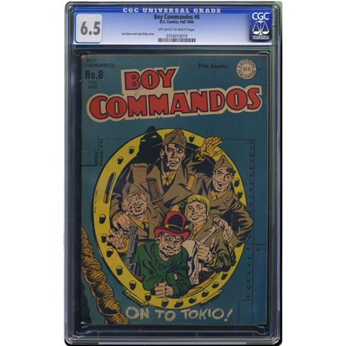 <B>Boy Commandos #8 (DC, 1944) CGC FN+ 6.5 Off-white to white pages.</B></I> Simon and Kirby cover. Overstreet 2006 FN 6.0 value = $162; VF 8.0 value = $329. CGC census 1/06: 2 in 6.5, 4 higher. <I>From the Collection of Harold Curtis.</B></I>