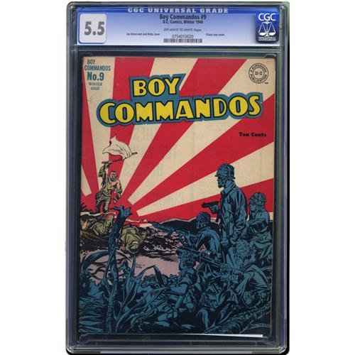 <B>Boy Commandos #9 (DC, 1944) CGC FN- 5.5 Off-white to white pages.</B></I> Simon and Kirby cover. Overstreet 2006 FN 6.0 value = $162. CGC census 1/06: 1 in 5.5, 10 higher. <I>From the Collection of Harold Curtis.</B></I>