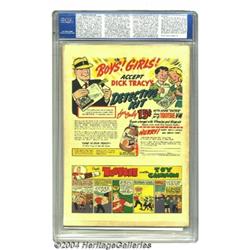 <B>Boy Commandos #9 (DC, 1944) CGC FN/VF 7.0 Off-white pages.</B></I> Simon and Kirby were never lacking for an original twist, and for this cover they even departed from their usual kinetic action, producing a war cover of powerful dramatic impact. Overstreet 2004 FN 6.0 value = $159; VF 8.0 value = $318. <BR><BR><B>Important notice:</B> Heritage usually auctions material at the rate of 200-250 lots per hour. On some occasions eBay Live bid software or the Internet may not be able to keep up with the pace of the auction. We recommend placing a realistic absentee bid now as insurance to avoid disappointment. Occasionally the auctioneer may eliminate or reject an eBay Live bid, and the auctioneer may also reopen a lot after the close of the eBay live bidding (usually because we missed an audience bid), and may reject your bid even if it shows you as the winning bidder. By bidding via eBay Live, you agree that Heritage may award the lot to another bidder at its sole discretion under the circumstances described above or any other reasonable circumstances. Since eBay bids are not shown to us until we open the lot on the floor, we treat those bids just like floor bids. In most cases the floor responds before the eBay bid is presented to us, due to Internet lag time, so for consistency we have made it a policy that floor bids are always considered first over tie eBay live bids. Also please note that all Heritage lots purchased through eBay Live carry a 20% Buyer's Premium. Please make sure you read the Terms and Conditions before you bid. </span></font></tr></table></td></tr></table>