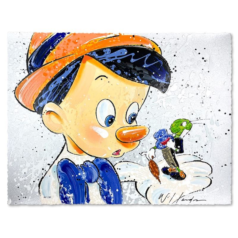 "Boy Oh Boy Oh Boy" is a limited edition serigraph on deckle edge paper by David Willardson, GP numbered 1/120 and hand signed by the artist. This piece is licensed by Disney Fine Art. Includes Letter of Authenticity. Measures approx. 20" x 16" (image).