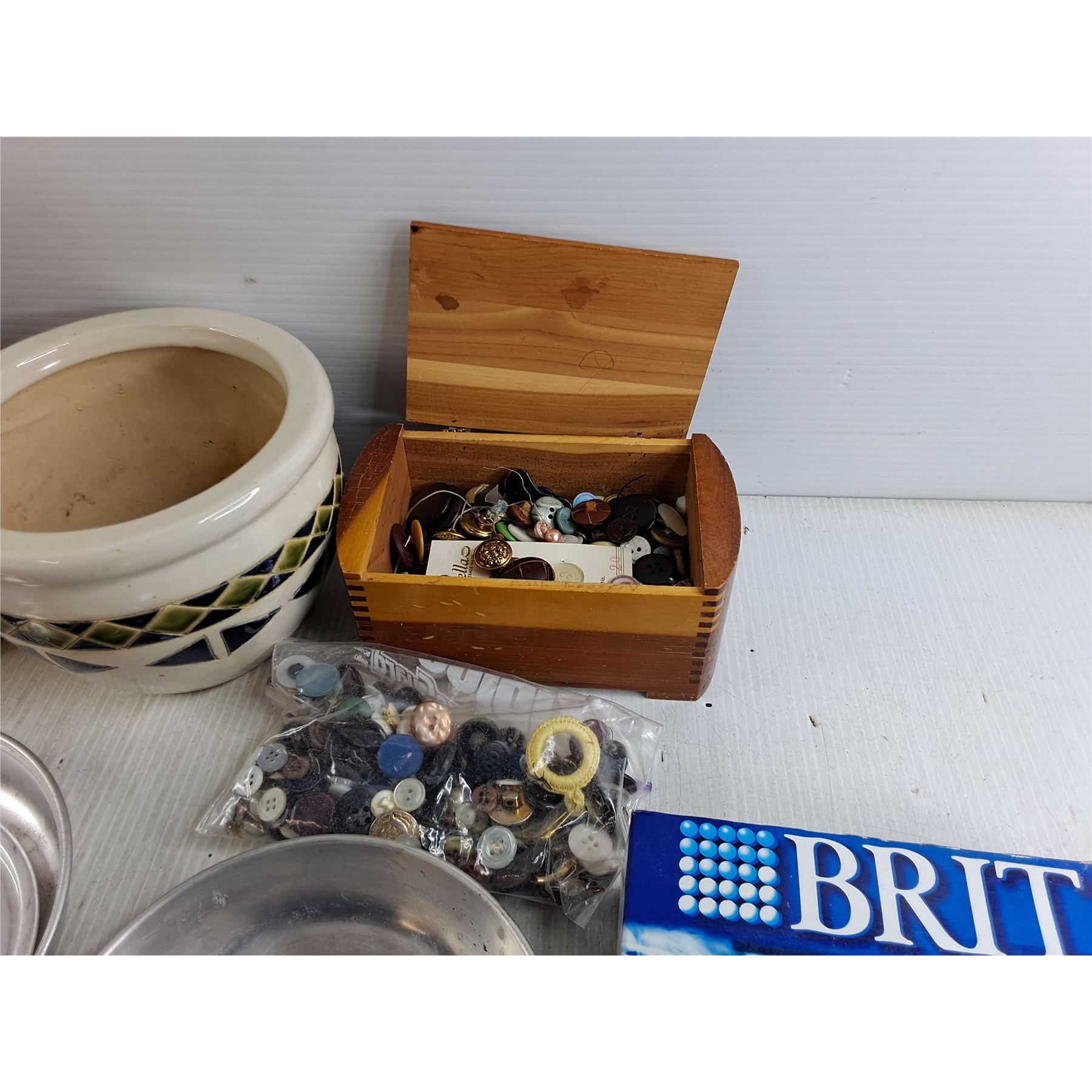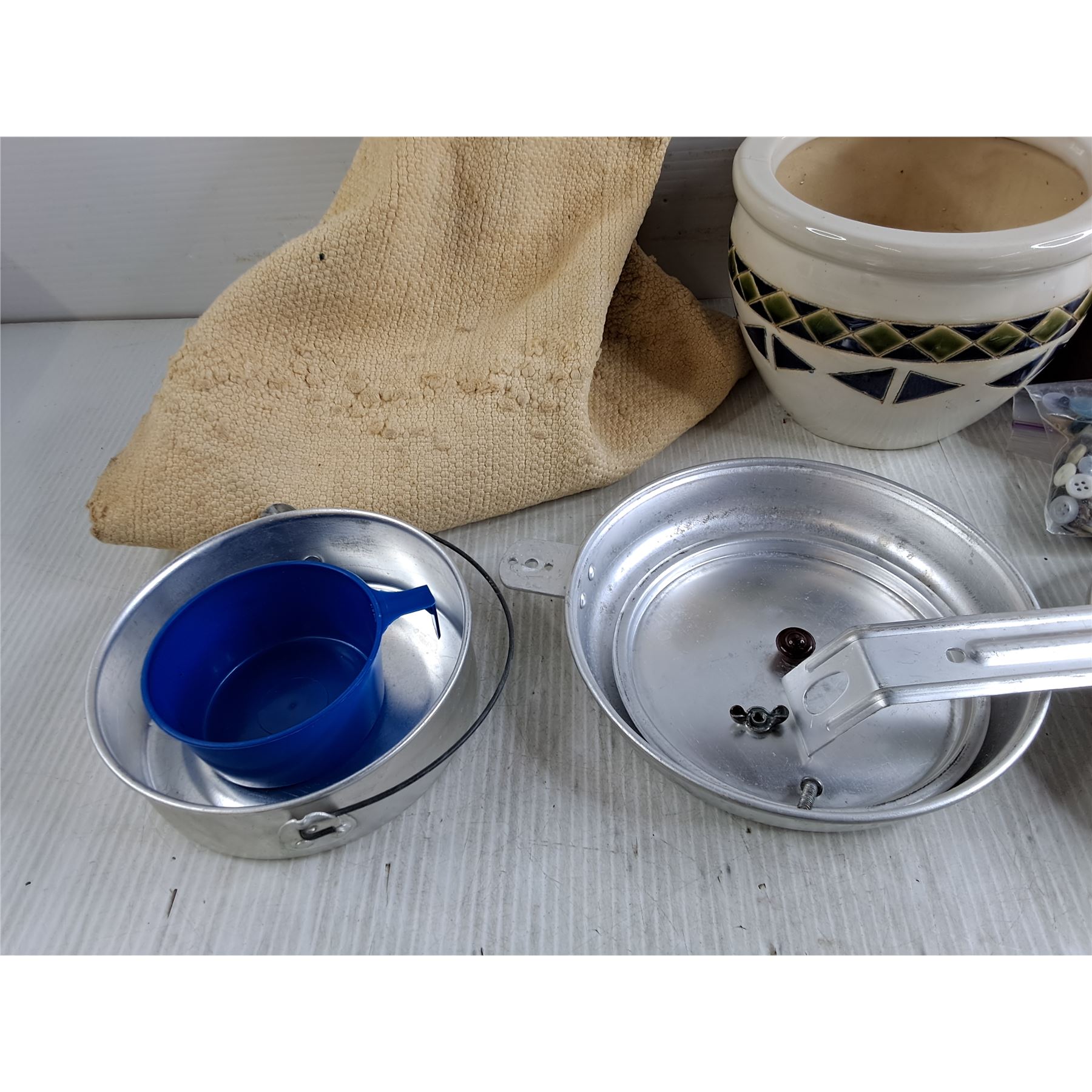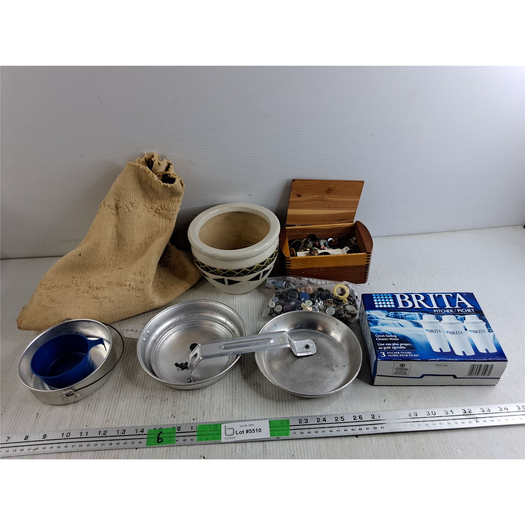 Boy Scout Cooking Set, Ceramic Planter, Brita Pitcher Filters, Sewing Buttons, Misc