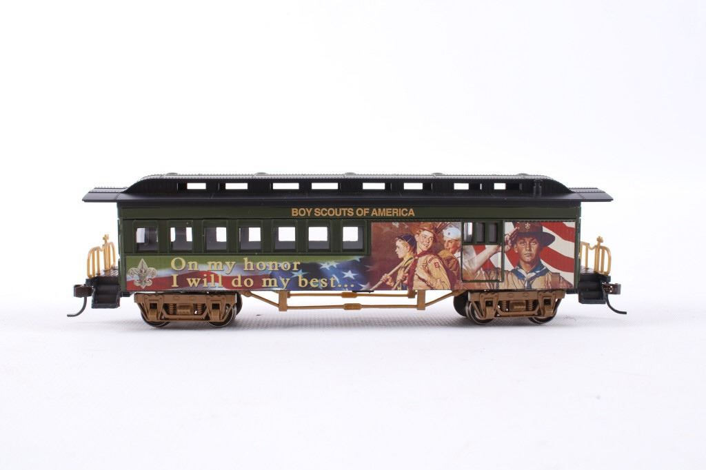 Included in this lot is a Hawthorne Village Boy Scouts of America-100 Years of Scouting Express Normal Rockwell 2010 train set. This pristine set includes a 14-piece HO gauge track set, power pack and speed controller. This heirloom-quality train set brings you everything you need to enjoy the classic excitement of a real working On30-scale electric train. Featuring "On My Honor Flatbed", "Scouts of Many Trails Box Car", "And to Obey the Scout Law Box Car", "Scouts of Many Trails Box Car", "To Help Other People Combine Car", "To Do My Duty Combine Car", "Jamboree Car", "Eagle Scout-Be Prepared Car", "BSA Engine and Tender", "To Keep Myself Physically Strong Box Car", On My Honor Combine Car", and "Mentally Awake and Morally Straight Combine Car". Available from Hawthorne Village, A Bradford Exchange Company, this Norman Rockwell train set features precision detailing right down to the gleaming brass wheels and classic Scouting art. The entire set is resplendent with full-color Norman Rockwell art spanning the decades since 1924, along with motifs and trademarks - including the specially designed BSA 100th anniversary logo, celebrating 100 Years of Scouting' excellence. All sets have a Certificate of Authenticity by Hawthorne Village and a E-Z track train set assembly instructions.