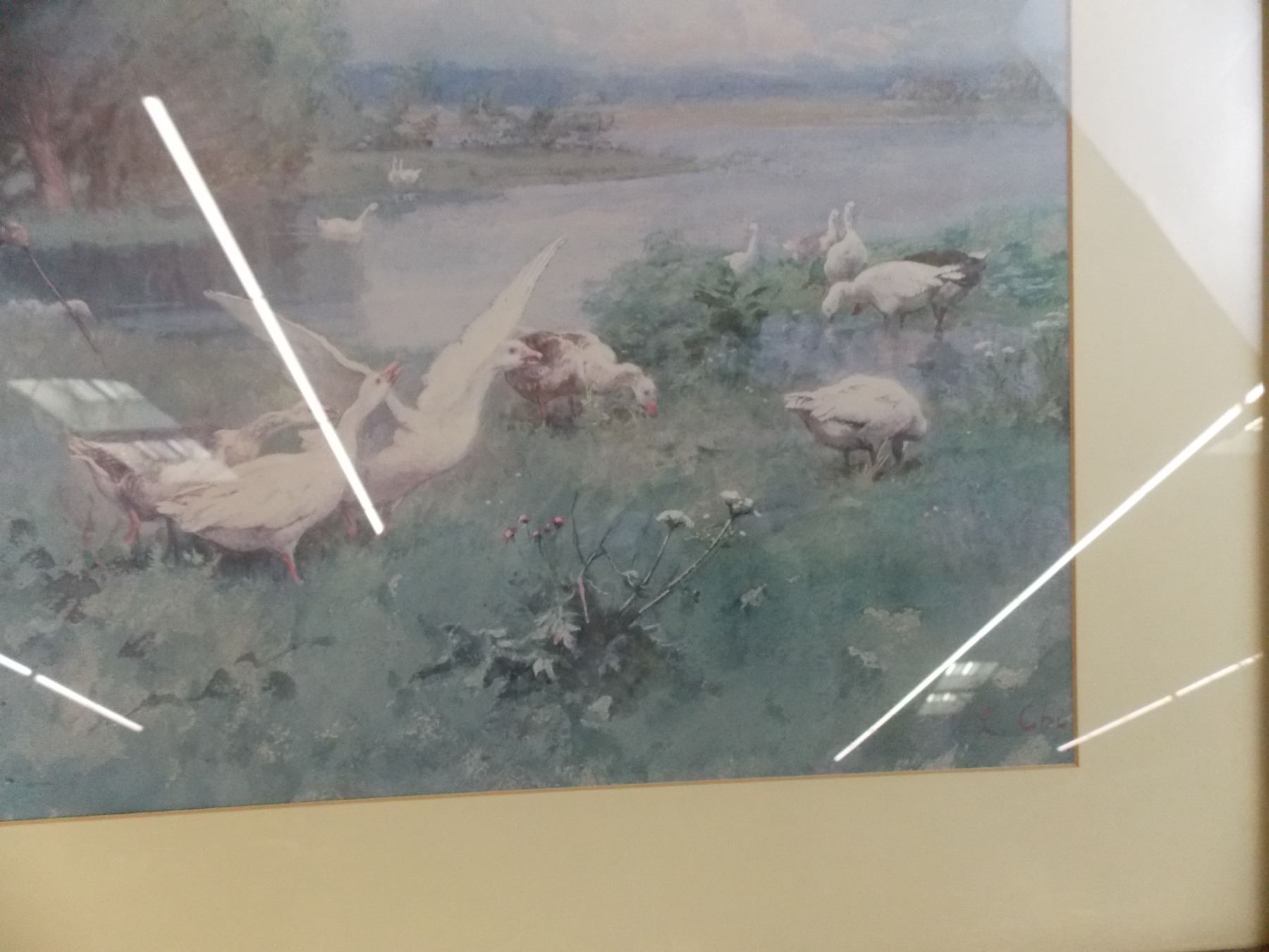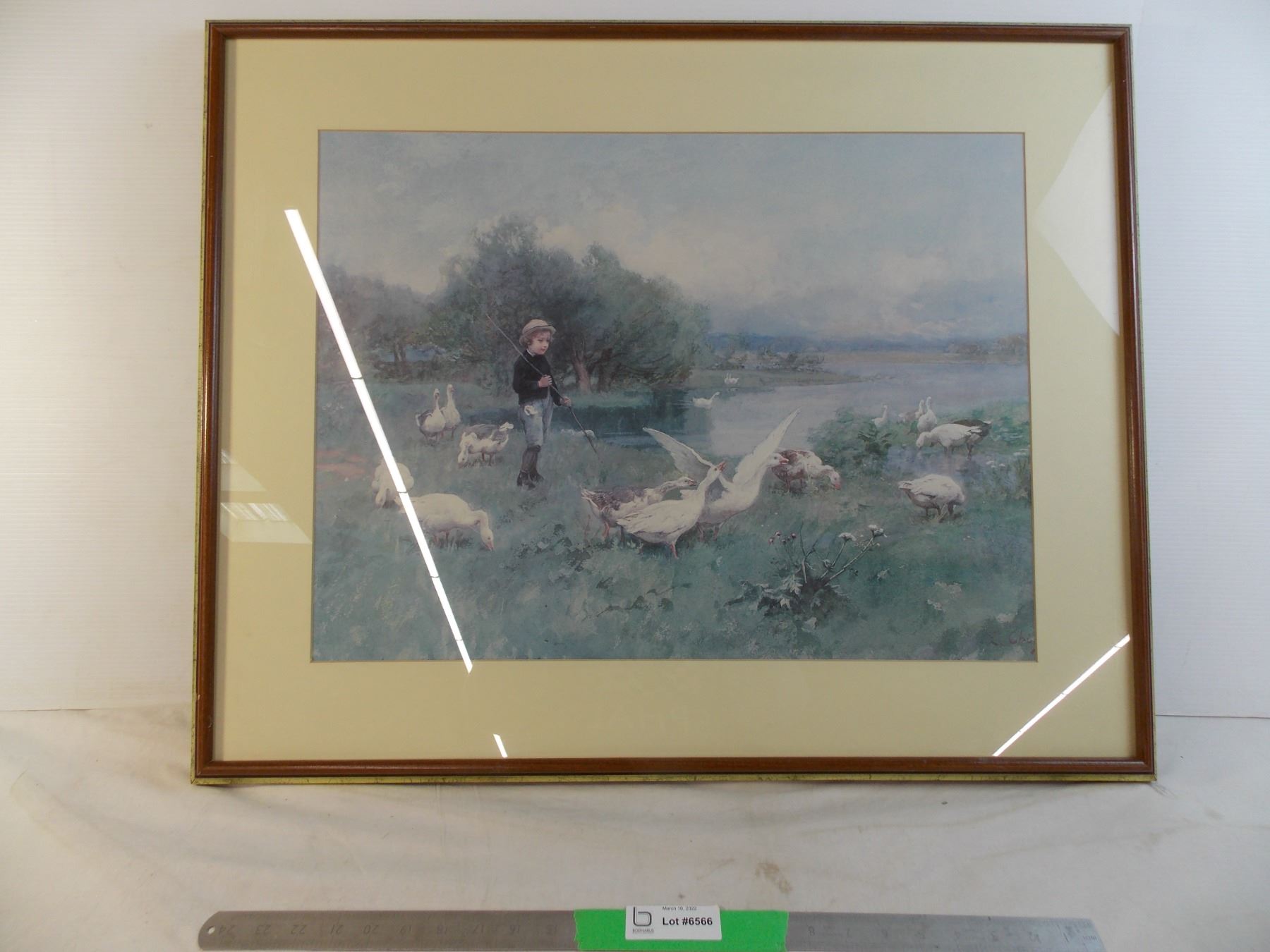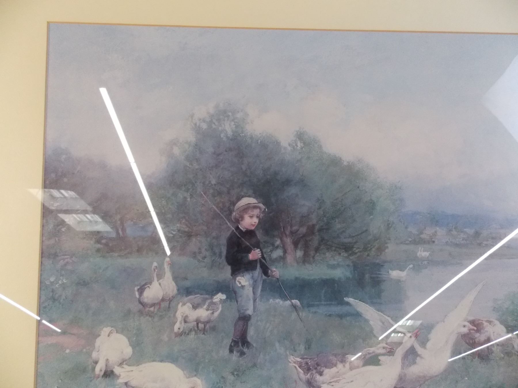 *Boy playing with geese print in frame - 31x25