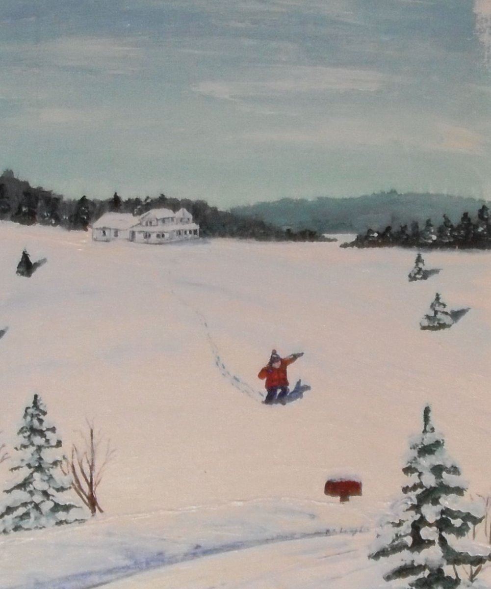 Boy's long struggle in deep snow to mail box, obviously is this Robert A. Langdon 16 inches high x 12 original painting on canvas;add to your collection or give this lifetime treasure; certificates of authenticity and provenance story will be provided as well as many copies of your receipt for your usage; one collector's joy for you to enjoy too; Don't be shy to email for any questions: ontart@yahoo.ca