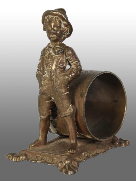 Marked "Barbour Silver Company" and numbered "8". Young boy in bare feet with hands in pocket, hat and cut-off pants stands in front of napkin holder on a base. Silver loss. Condition (Very Good).