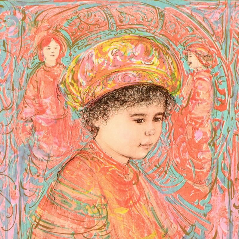 "Boy with Turban" is a limited edition lithograph on paper by Edna Hibel (1917-2014), numbered and hand signed by the artist. Includes Certificate of Authenticity. Measures approx. 22" x 17" (border), 14" x 15" (image). ** Please note: There are creases in the border area. **
