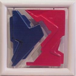 WHITE, BLUE, RED, 1986, enamel painted ceramic sculpture, 15 1/2 x 15 1/2 x 3", signed and dated. $200/400