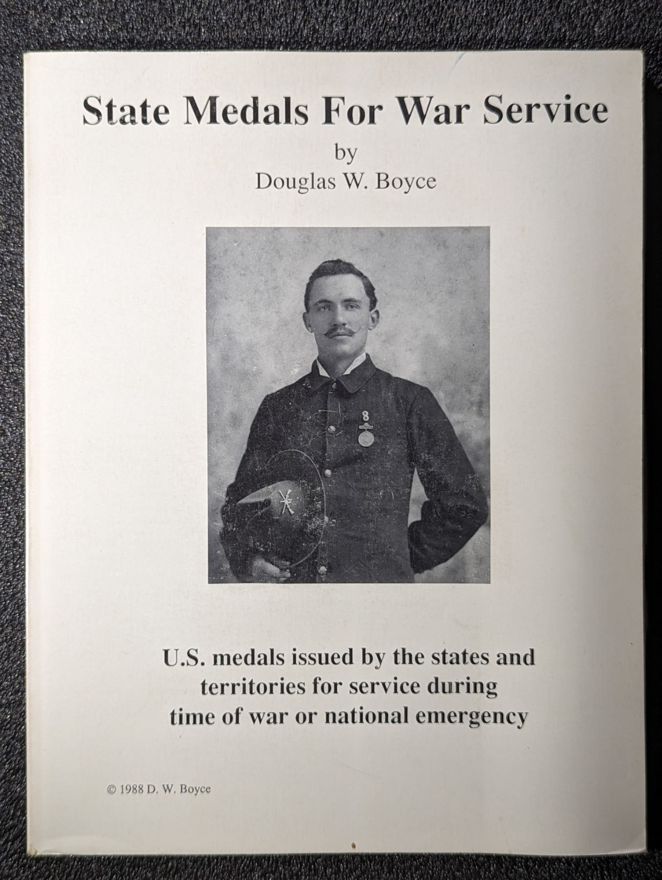 Boyce, Douglas W. STATE MEDALS FOR WAR SERVICE. D.B. Enterprises, San Jose. 1988. 4to. 142 pages. Original printed card covers. b&w photos. Fine. U.S. medals issued by the states and territories for service during time of war or national emergency. Lot weight: 0 lbs 15oz. Subject(s): United States Orders and Decorations.