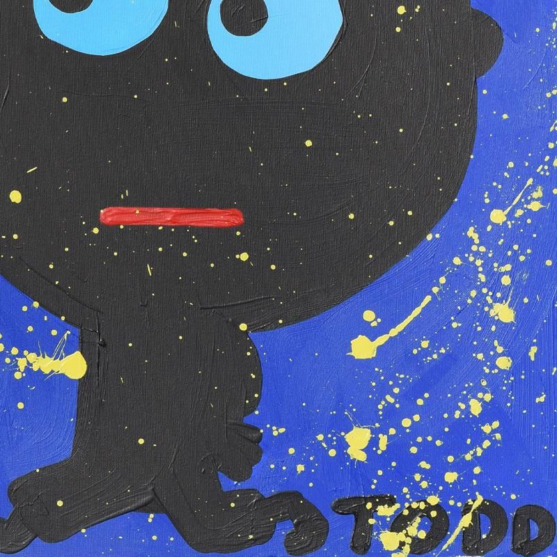 "Boys Are Afraid of the Dark" is an original acrylic painting on gallery wrapped canvas by Todd Goldman, hand signed by the artist. Includes Letter of Authenticity. Measures approx. 48" x 36" (image). Due to the way this piece was stored there may be minor wear or signs of age (such as wear on the corners) but the piece is in overall good condition.