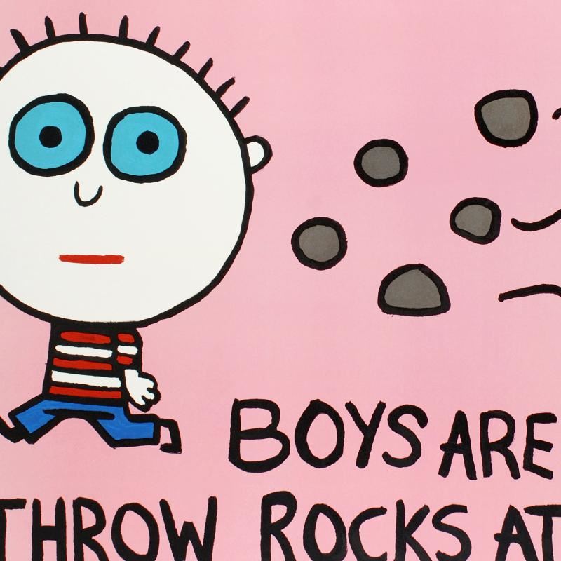 Pop artist Todd Goldman is known all across the globe for his whip-smart and wickedly funny puns and pictures! "Boys Are Stupid, Throw Rocks at Them" is a limited edition lithograph on paper, numbered and hand signed by Todd. Includes Certificate of Authenticity! Measures approx. 42.5" x 32" (no border).