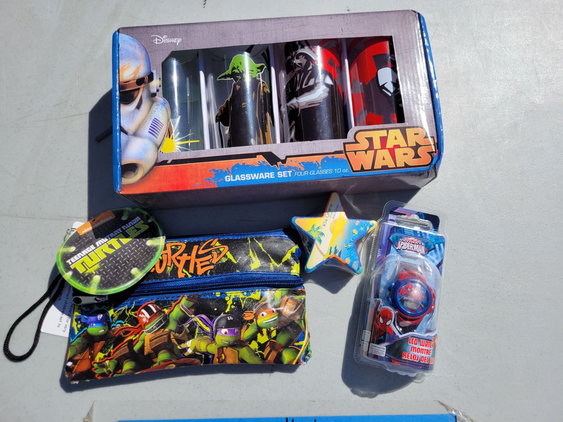 Boys Lot - Star Wars Glassware Set, Teenage Mutant Ninja Turtle Case, Spider-Man Watch +